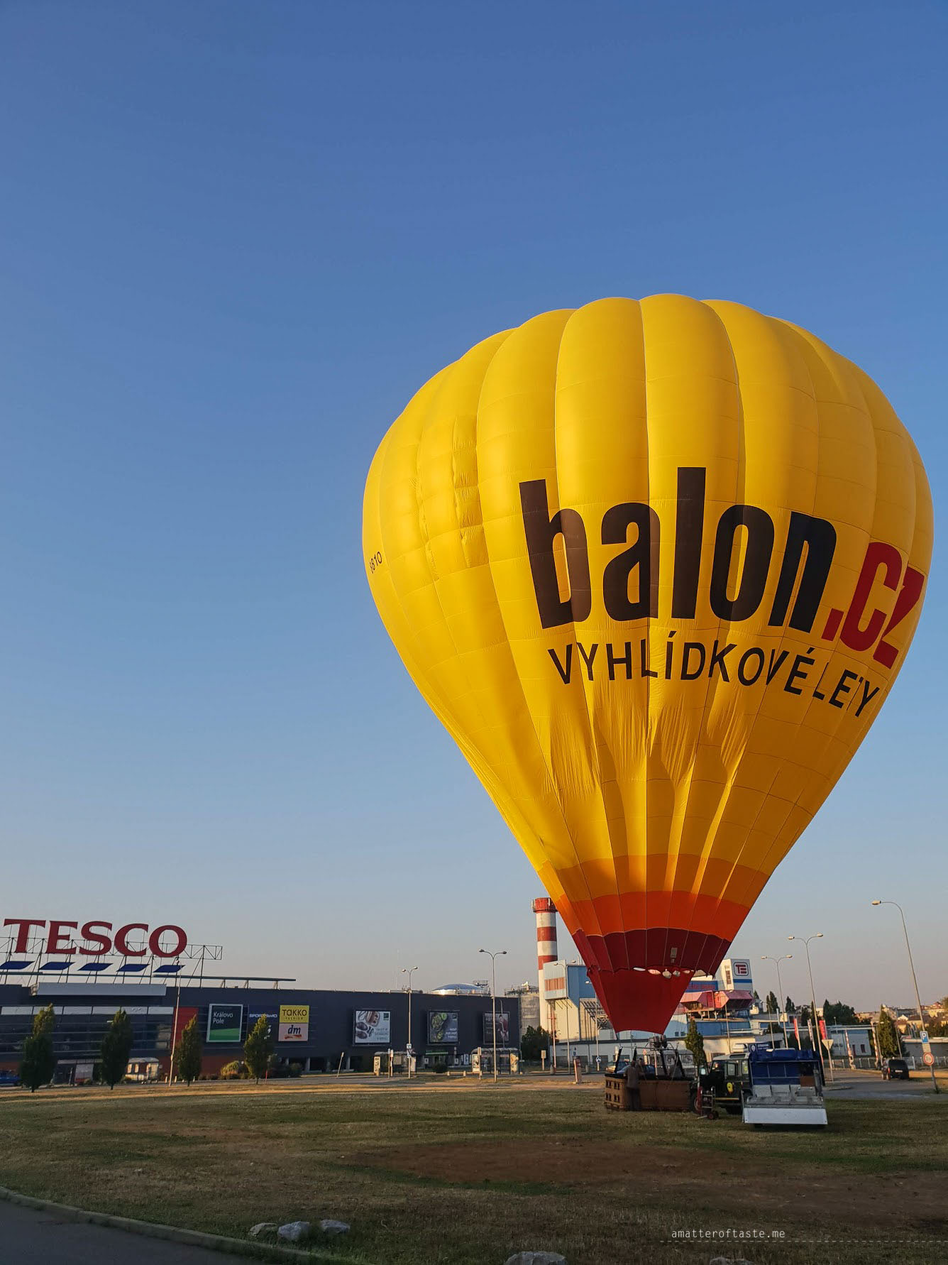 And what a fantastic experience it was! We started the day very early (had to wake up before 5am) at what felt like a very random spot – car park in front of Tesco. I was standing there almost hypnotised by the process of preparing the hot air balloon for the flight when suddenly it was go time – we were invited to step inside the basket. There was no time for thinking, being terrified or panicking. Once all 8 of us were inside the basket the takeoff happened in seconds. We quickly gained height and started cruising over Brno.