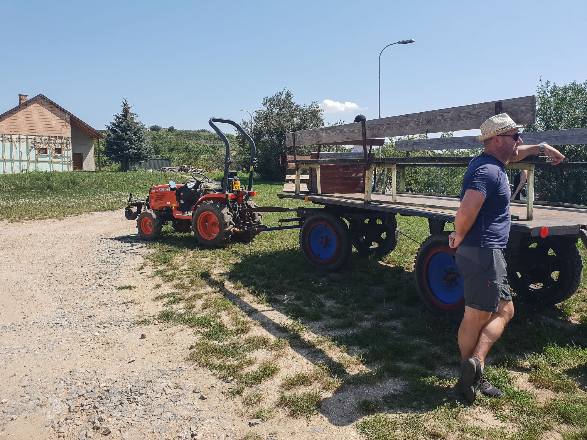 We arrived in style for lunch at Penzion Pastuška – by a tractor! We were all seated on a trailer with 2 long benches along the sides and driven around vineyards. Some of us got slapped by some low hanging branches, some scratched by spikey plants but everyone had fun nevertheless. For me, it brought childhood summer memories of riding on tractors with my neighbours. Good times.