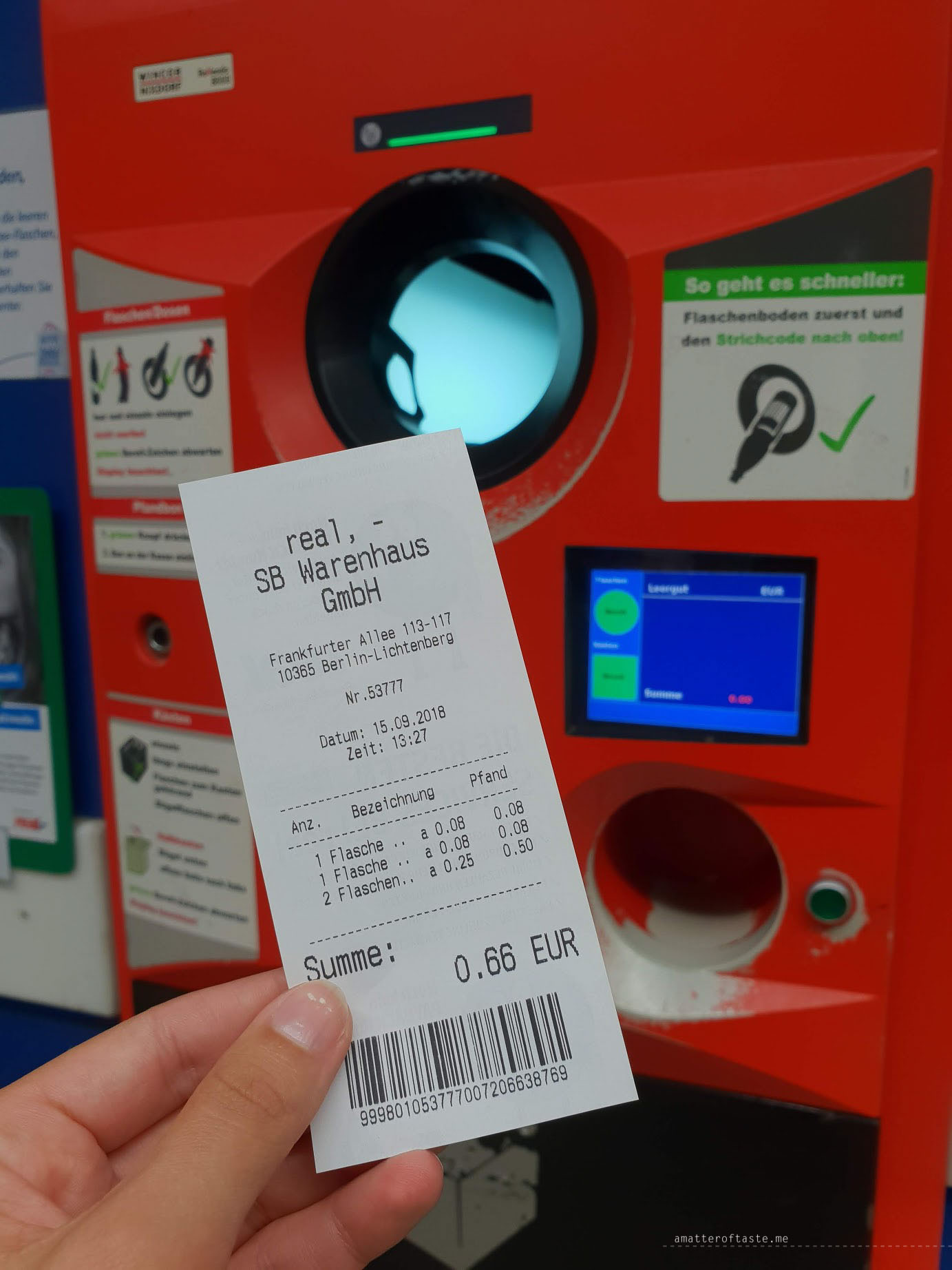 Get your money back for all plastic and glass bottles (which is between €0.08 – €0.25 per bottle). Most supermarkets have machines where you drop your bottles and get a voucher to claim your pfand back. Easy peasy.