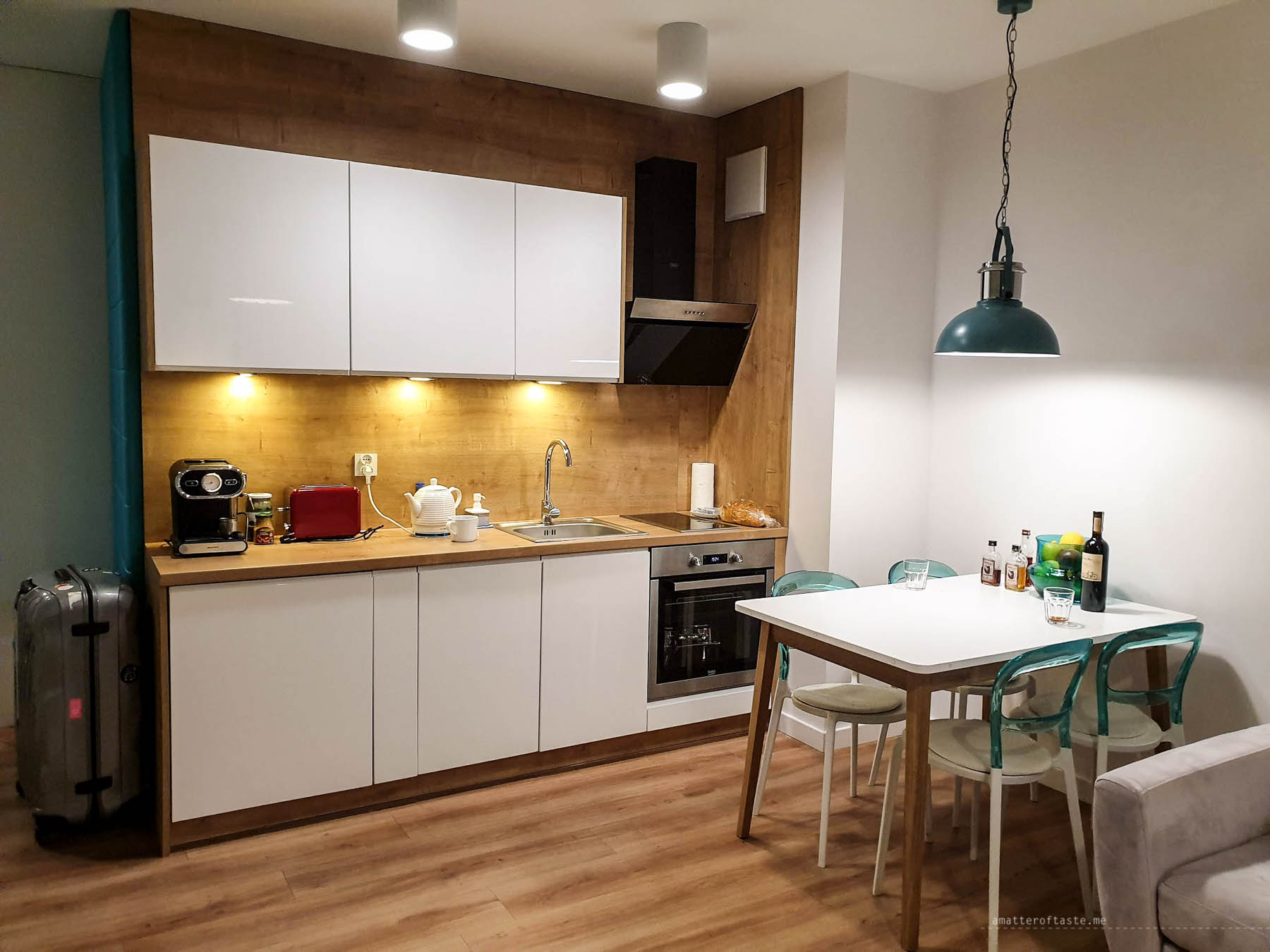 We had a nice, modern apartment in a new building. It was much smaller than the one in Budapest but it was enough for the two of us. There was also a small balcony, which didn’t get much use. I really enjoyed a built-in Bluetooth speaker in the bathroom and spent most mornings dancing and singing in the shower to boost my energy and endorphins.