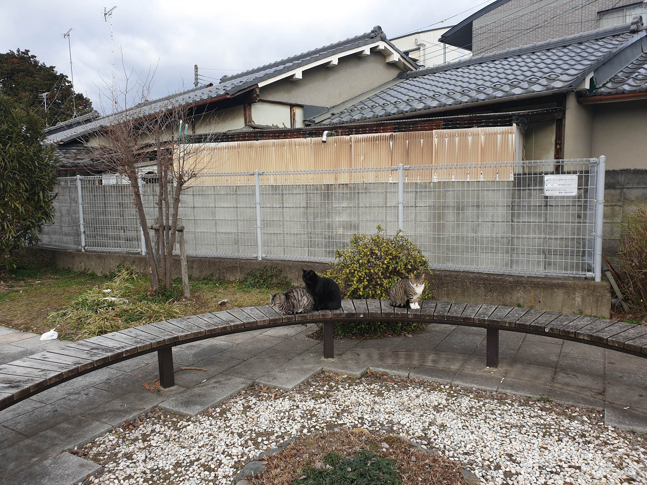 Our neighbourhood was quiet, filled with small houses and equally miniature veggie gardens between them. There were a couple of big supermarkets, a pretty temple, a small hill with great views of the area and three cats that everyone seemed to know, feed and pet. I was told on two occasions that the grey one was the mother and the black one was the baby. I never learned the story of the third one that was always hiding and avoiding people.