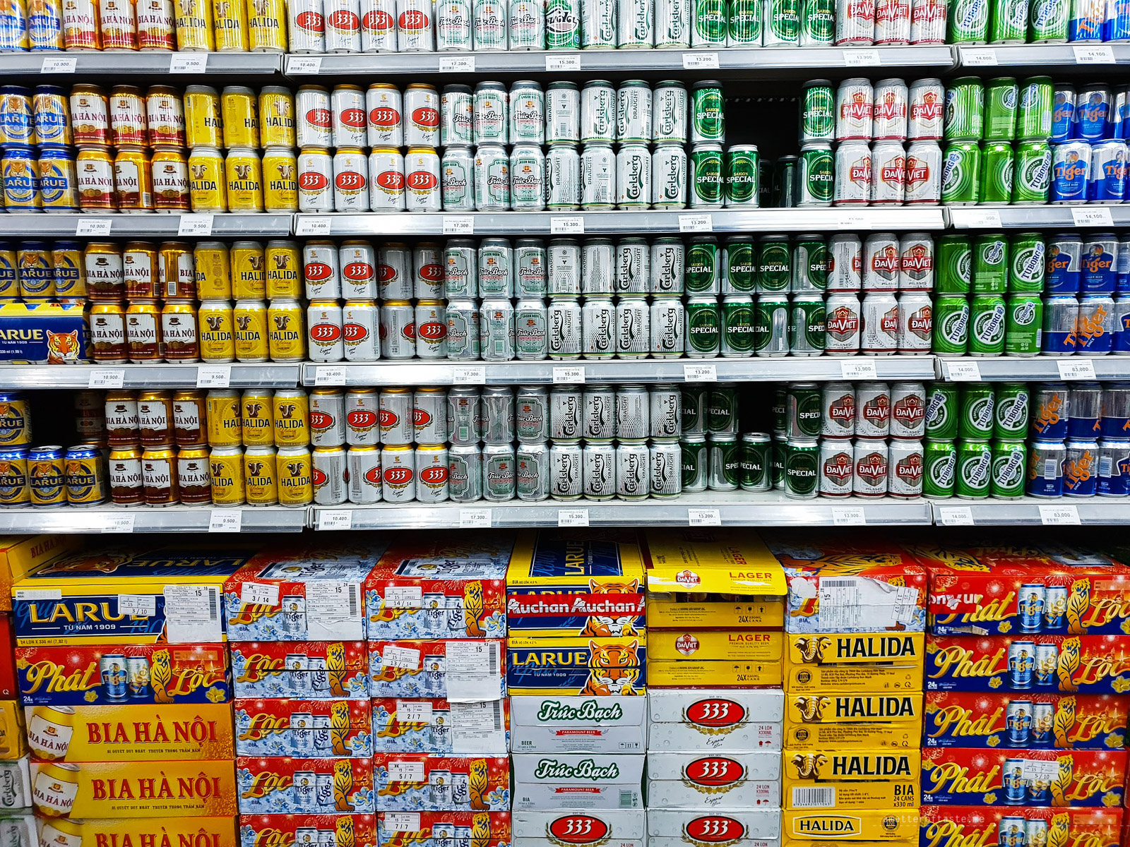 - Beer, 333 (24 x 330ml can): 226 500 VND = 13.24 AUD