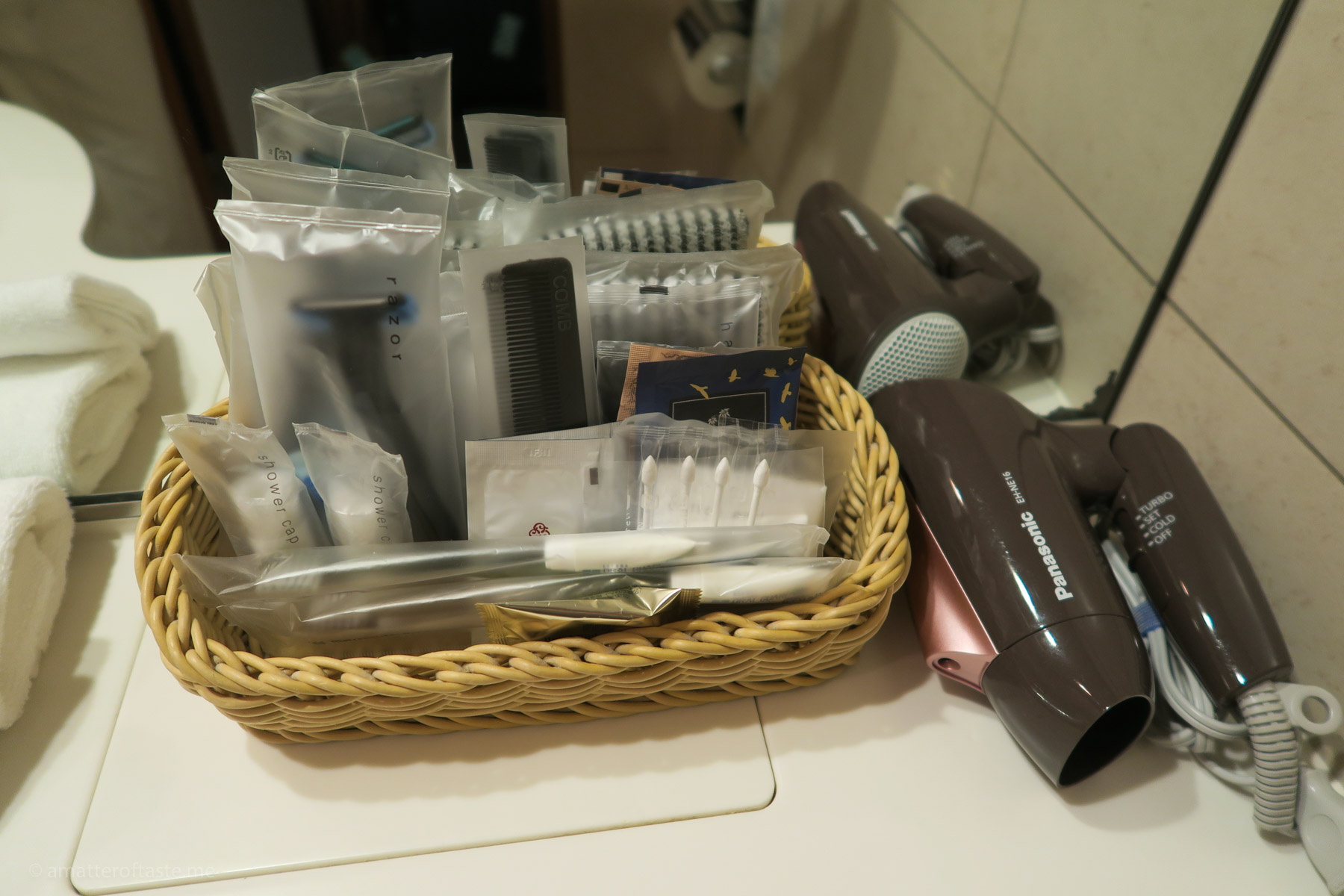 For my last night in Japan during my September 2017 visit, I decided to go to the fancy capsule hotel. The below is based on that stay at First Cabin Shinbashi Atagoyama. I have trouble calling the one I picked – Superior Capsule Room – a capsule. It resembles a small container with accordion-type doors. The bed doesn’t take all the space inside. There’s actual floor space where I was able to easily open my suitcase, a small table and a rubbish bin. Of course, there are all the things you can find in regular capsules like power points, tv and a clock. It was missing a USB outlet though. And unfortunately, a lock. It is apparently a fire safety-related thing and they cannot allow locking the rooms. There’s a lockable drawer under the bed, but it’s quite small and I couldn’t even squeeze my backpack in there.