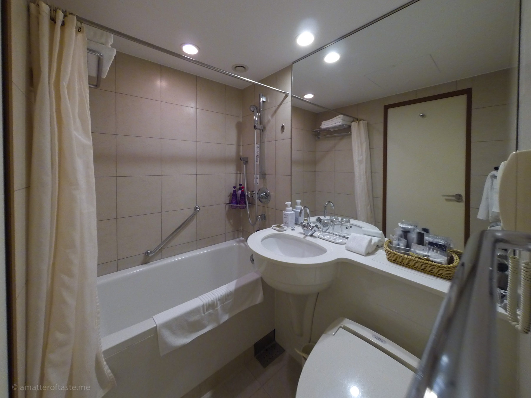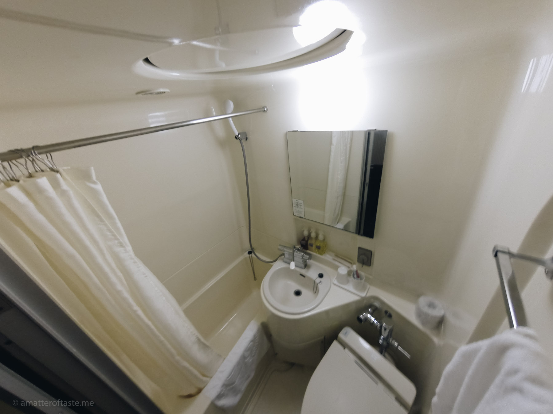 Being able to compare with the cheaper, but still on the premium side of things, capsule hotel, this one was disappointing. For two women-only floors, there was only one bathroom – with a Japanese-style bath and a single (!) shower room. I was glad that at least each floor had its own toilets. There’s a 30-ish cm gap between the door and the room ceiling that lets all the light from the outside into the room. The bed was hard and uncomfortable and when I couldn’t fall asleep I was actually missing “my” capsule from the previous night.