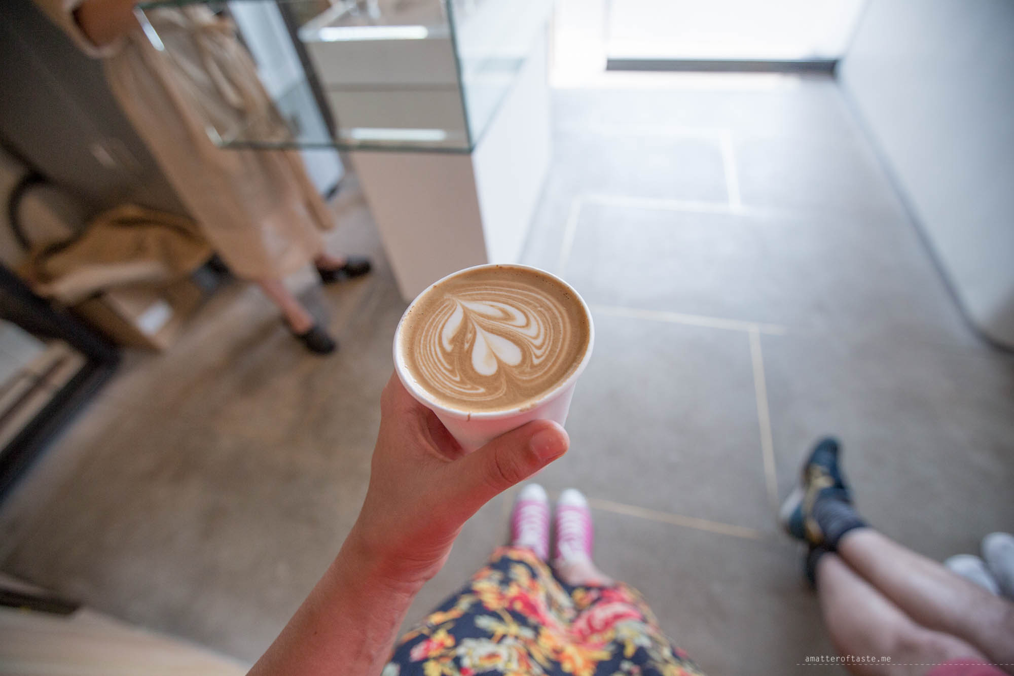 During our very few days in Kyoto, I’ve managed to visit % Arabica 3 times. The first one was the most memorable – as I walked there from the Nishiki Market, and was maybe 5 minutes away, I was caught in a summer storm. Stuck under a small roof, which eventually started leaking, I was really determined to brave the rain and get my coffee fix. Soaking wet, but happy to be there I ordered the biggest coffee I could. Made by the master himself, the coffee was excellent. And the very moment I sat down, ready to drink, the sun came out and the only reminders of the midday storm were my wet clothes and sad-looking hair. Nothing mattered. I had my coffee.