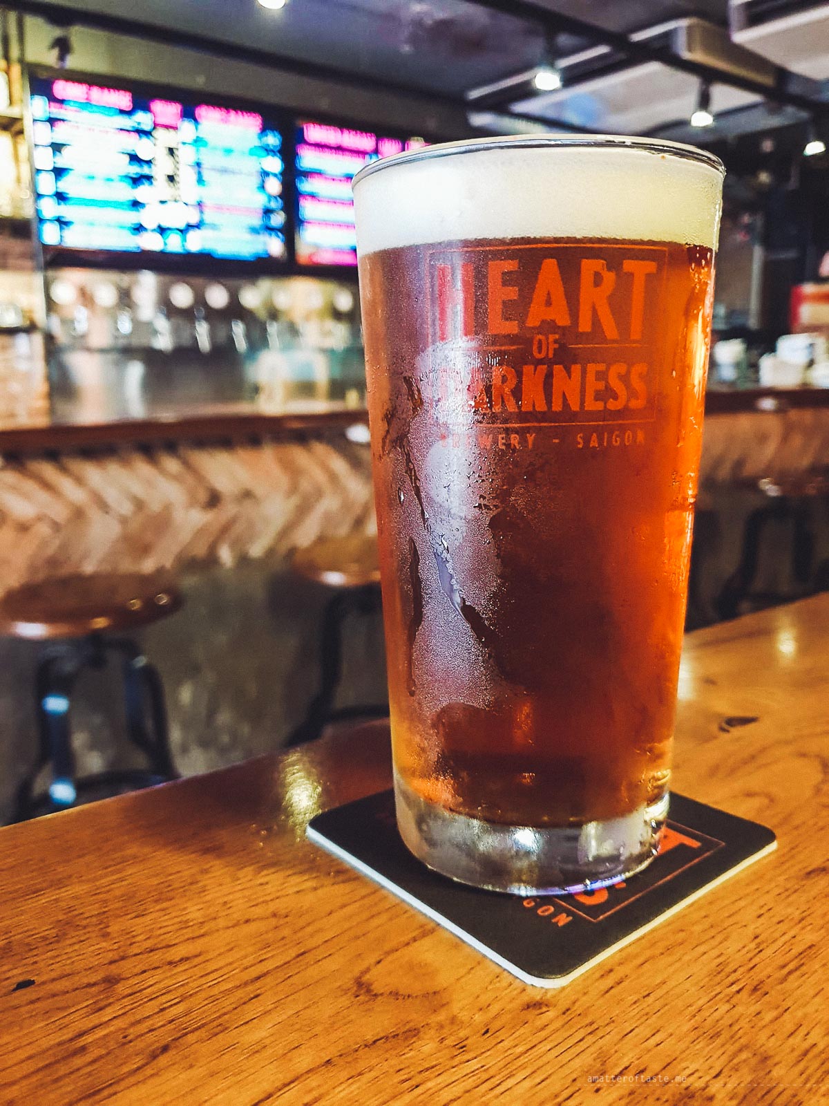 The vibe of the Heart of Darkness is especially inviting. It’s a dimly lit space with high tables and bar stools and rather industrial feel. The music is on the heavier rock side, which I always appreciate in breweries, but isn’t too loud and you can easily have a conversation. We were in Saigon in December which meant most places tortured us with questionably joyful Xmas songs – the Heart of Darkness got extra points from us for not having Xmas songs ever.
