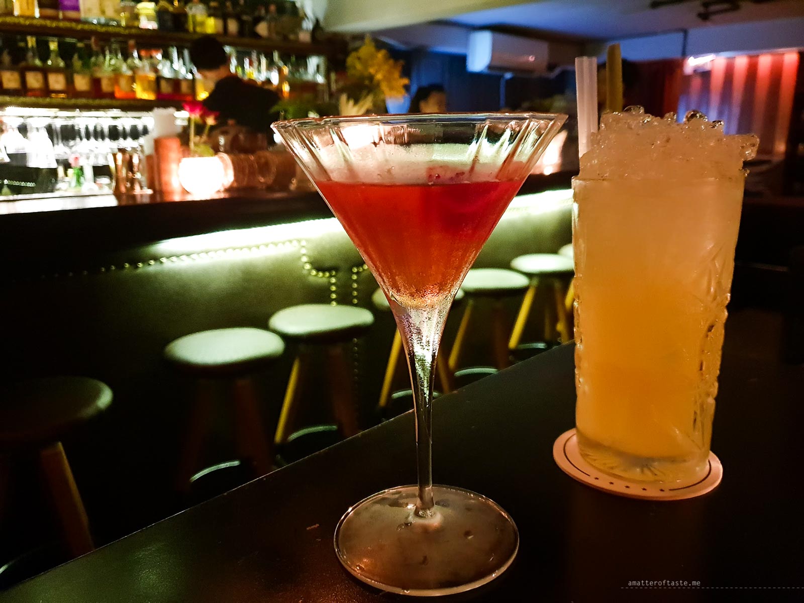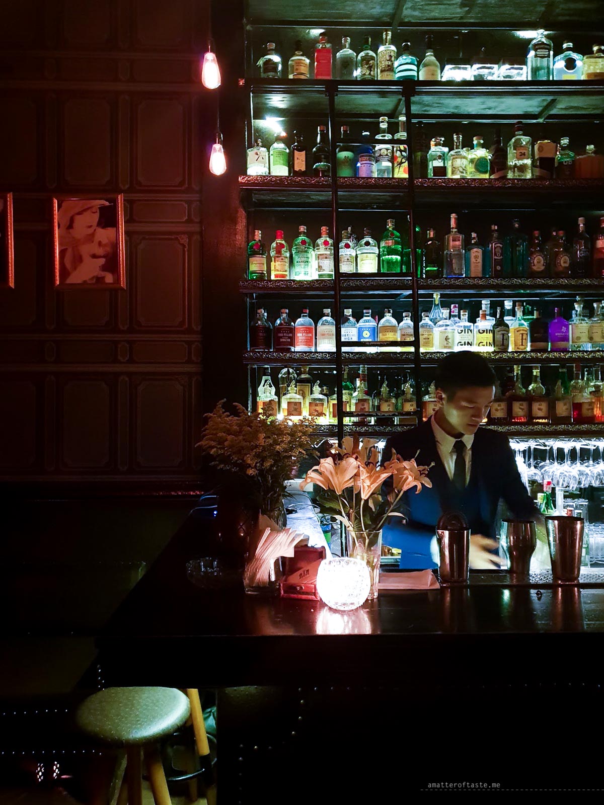 The interior is really dimly lit, to the point you may need to unleash your torch to be able to read the menu. Otherwise, just rely on the bartenders who know their way around gin. The furnishings are elegant with a lot of velvet and the general vibe of design elements as well as music is of the 1920s.
