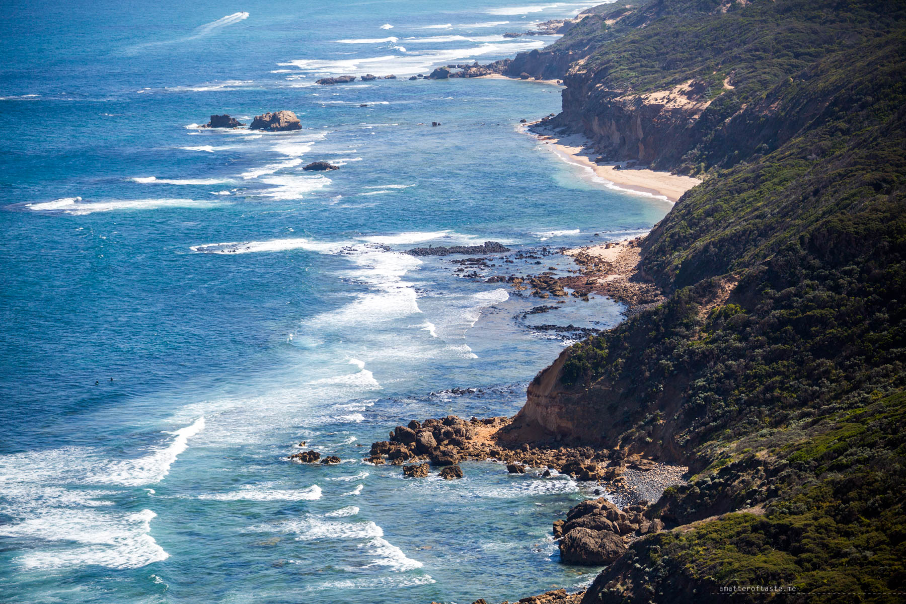 I’m not sure how much time this 2.4km track takes because we probably spent 30 minutes on the first lookout alone. Taking in the views, watching the rolling waves, being mesmerised by the shades of blue & turquoise in the water and spotting surfers down below.