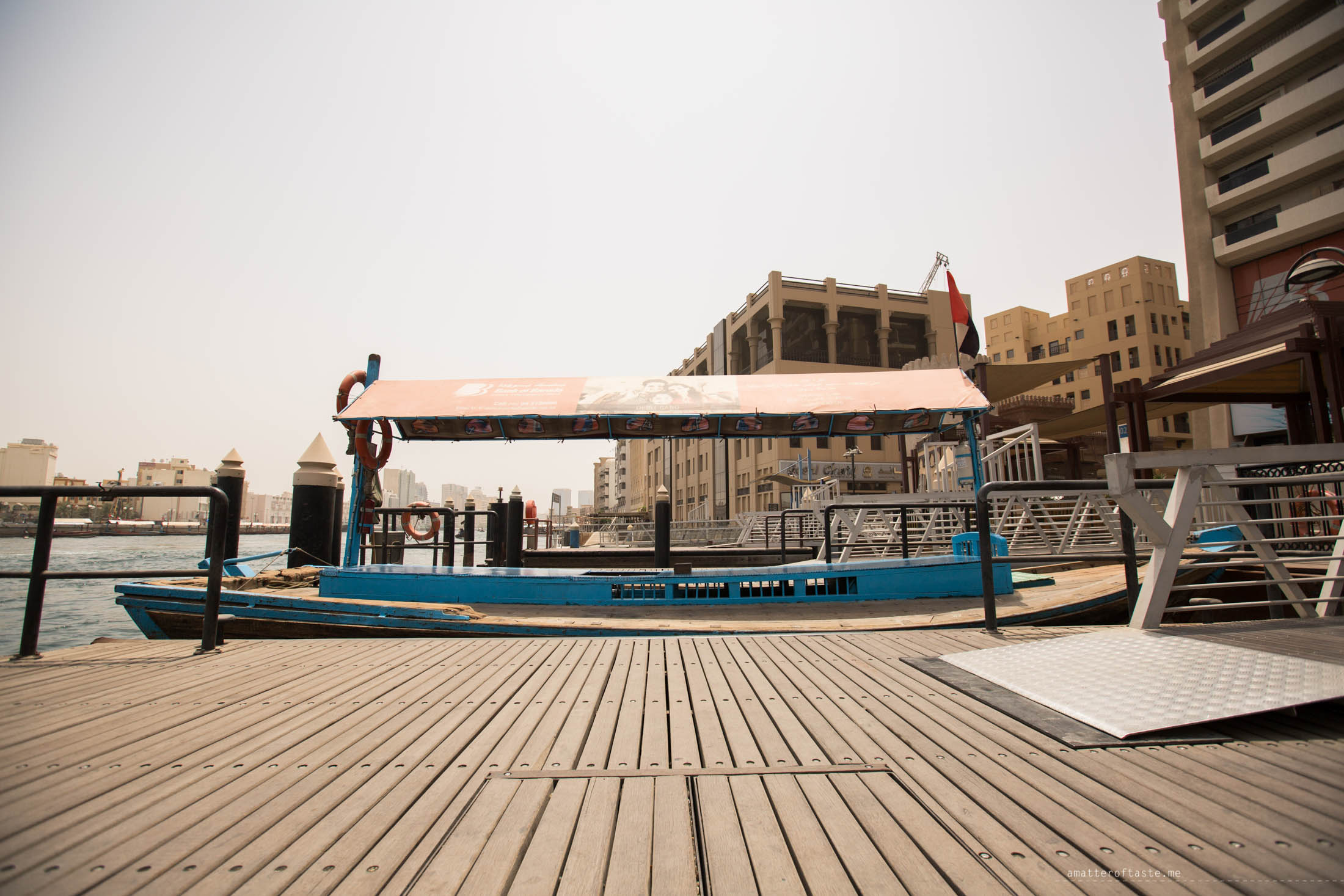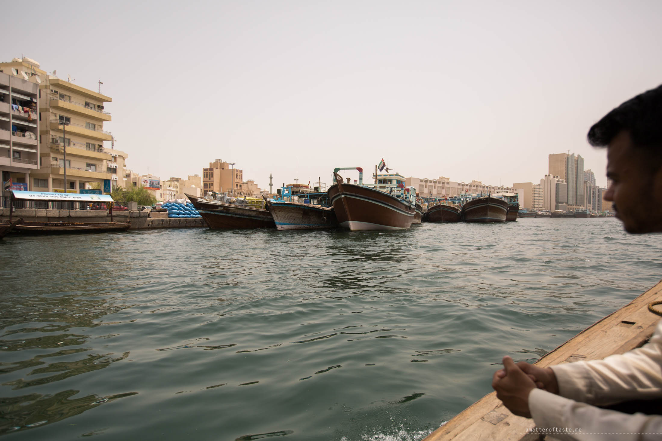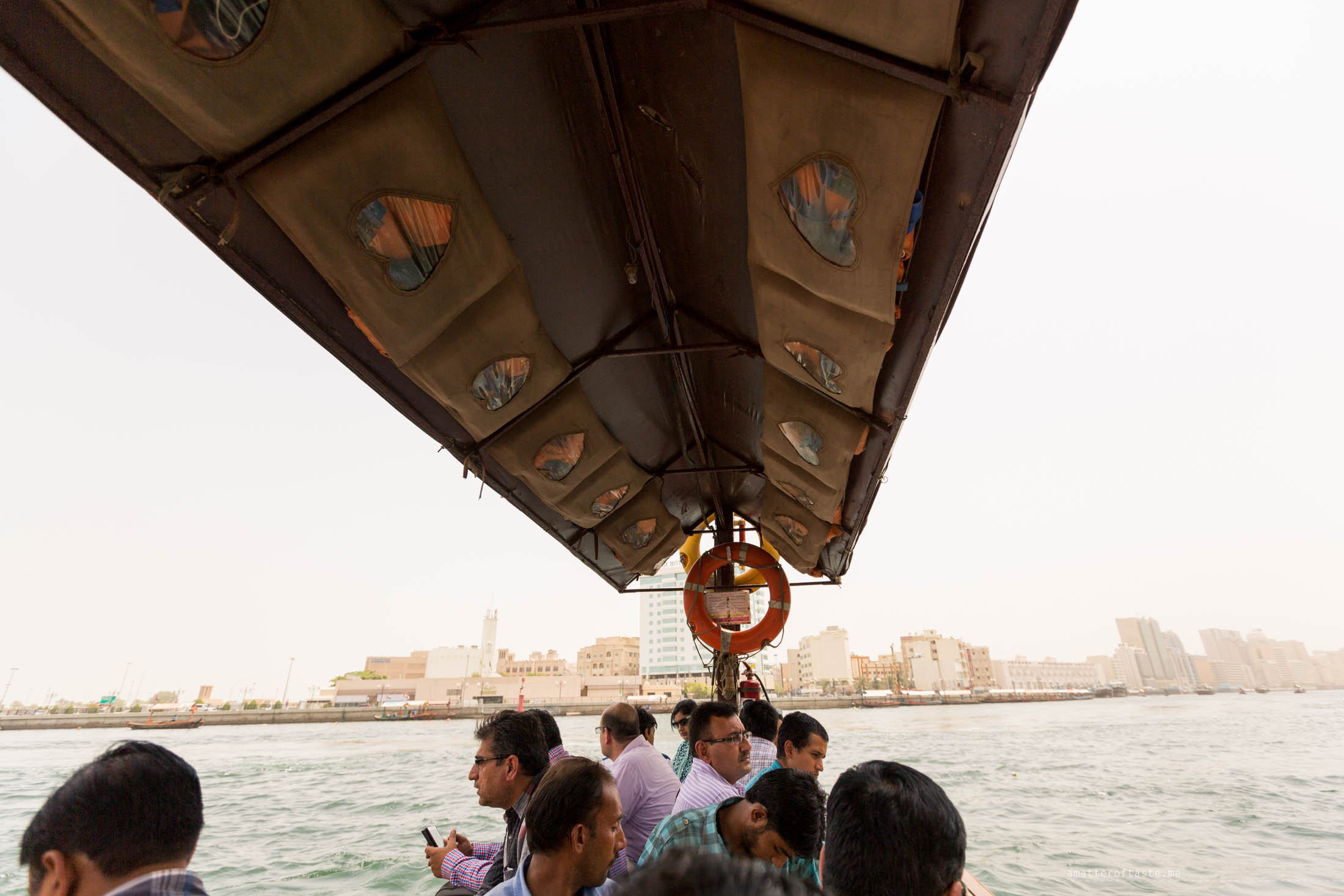 The best spent AED1 ever. Crossing the Dubai Creek on a traditional boat called abra was fast, convenient and fun. The ride from textile souk across to the gold souk was max. 5 minutes long but gave us an excellent opportunity to see Dubai from a different perspective. The creek, which historically has been the centre of Dubai’s commerce, is still very busy with all sorts of cargo boats.