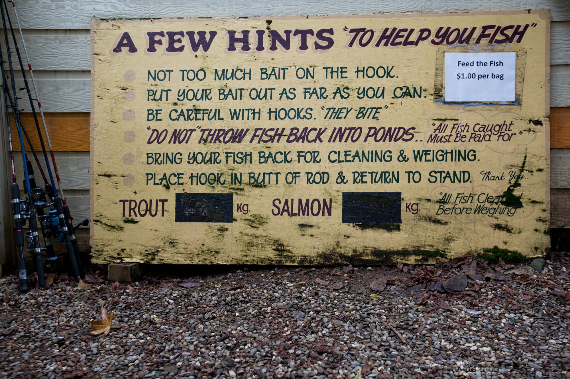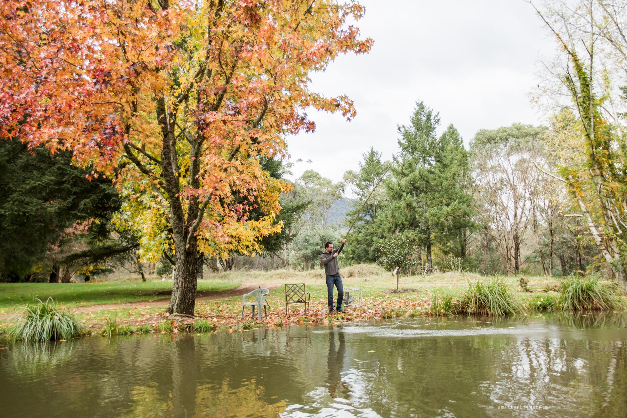 10am: Time for an adventure. Can you believe neither of us has ever been fishing? I feel like everyone did that at least once in their life… well, everyone but us. Interested to see how it turns out we make our way to the Mountain Fresh Trout & Salmon Farm. The equipment and bait are free, you pay only for the fish you catch. We receive the instructions, set everything by “our” pond (we decided to go for rainbow trout) and while I try to set the camera, Hubby catches the first fish. That was quick! I run around the pond to take photos of his first-ever catch and while I do that he already catches the second one. All we need to do now is drop the fish at the shop, where they will be cleaned & weighed, pay and decide on how we’ll be cooking them tonight. Easy as!