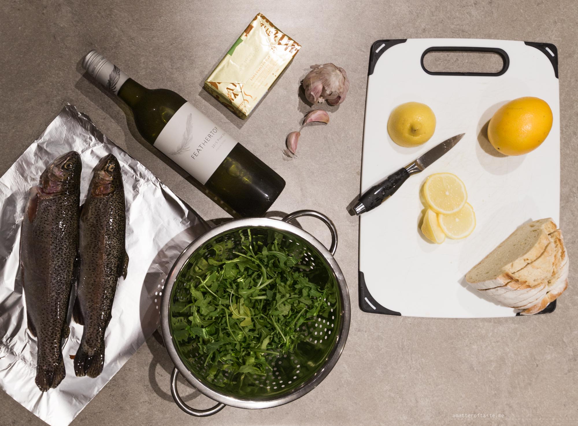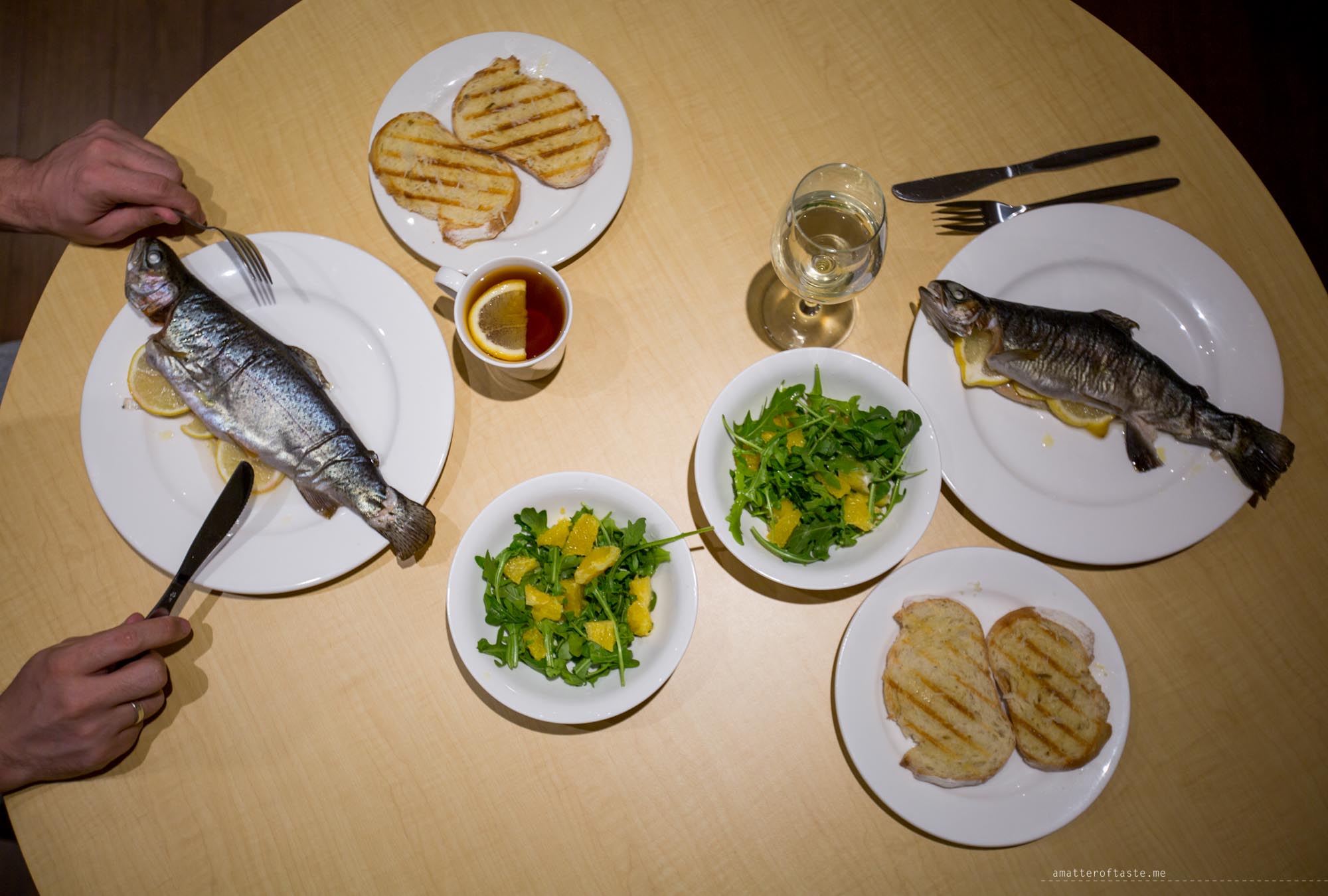 Easy oven-baked trout with orange salad and garlic bread