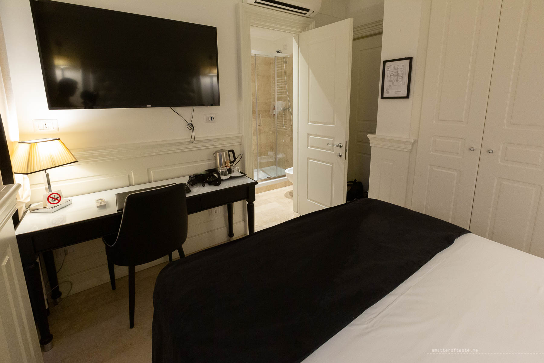 Like many hotels in Rome, the room is rather small. If you travel with bigger luggage you may have to do some Tetris-style manoeuvres as the bed, desk and wardrobe take most of the space.