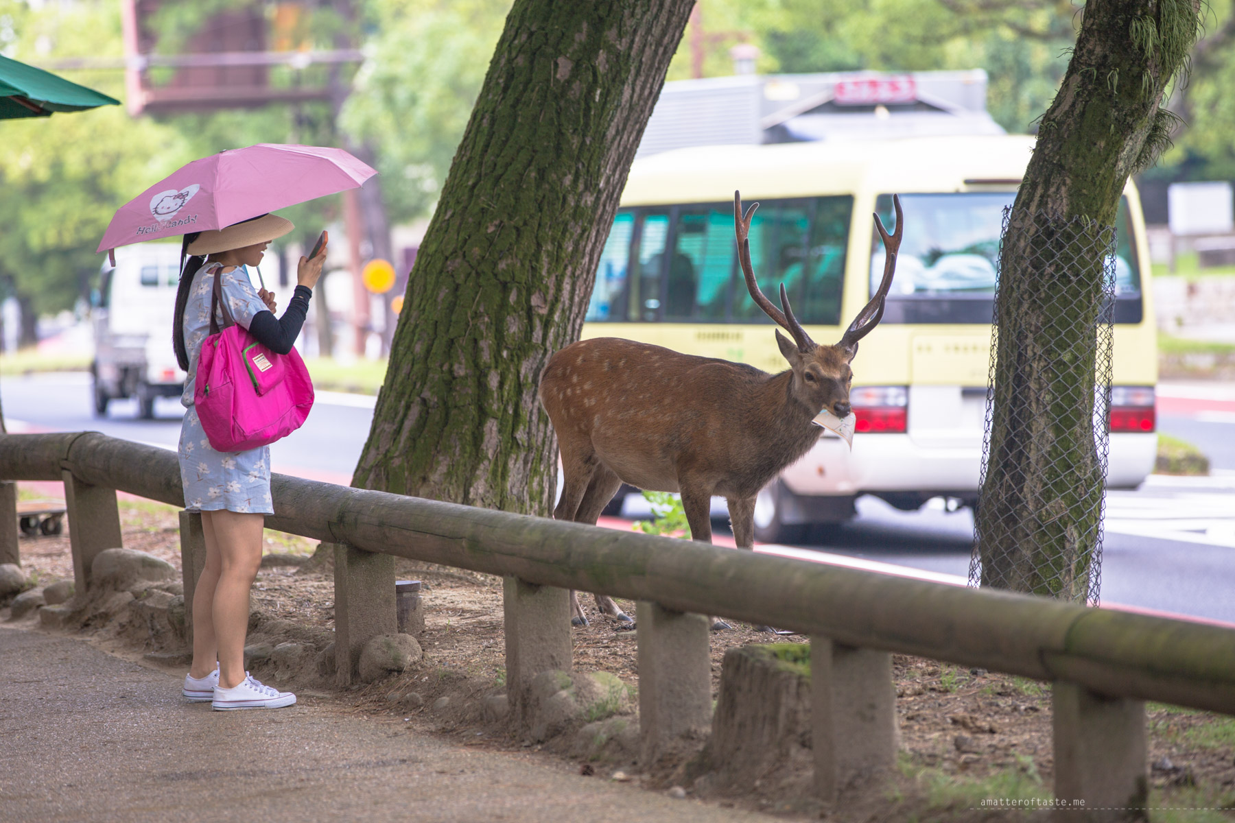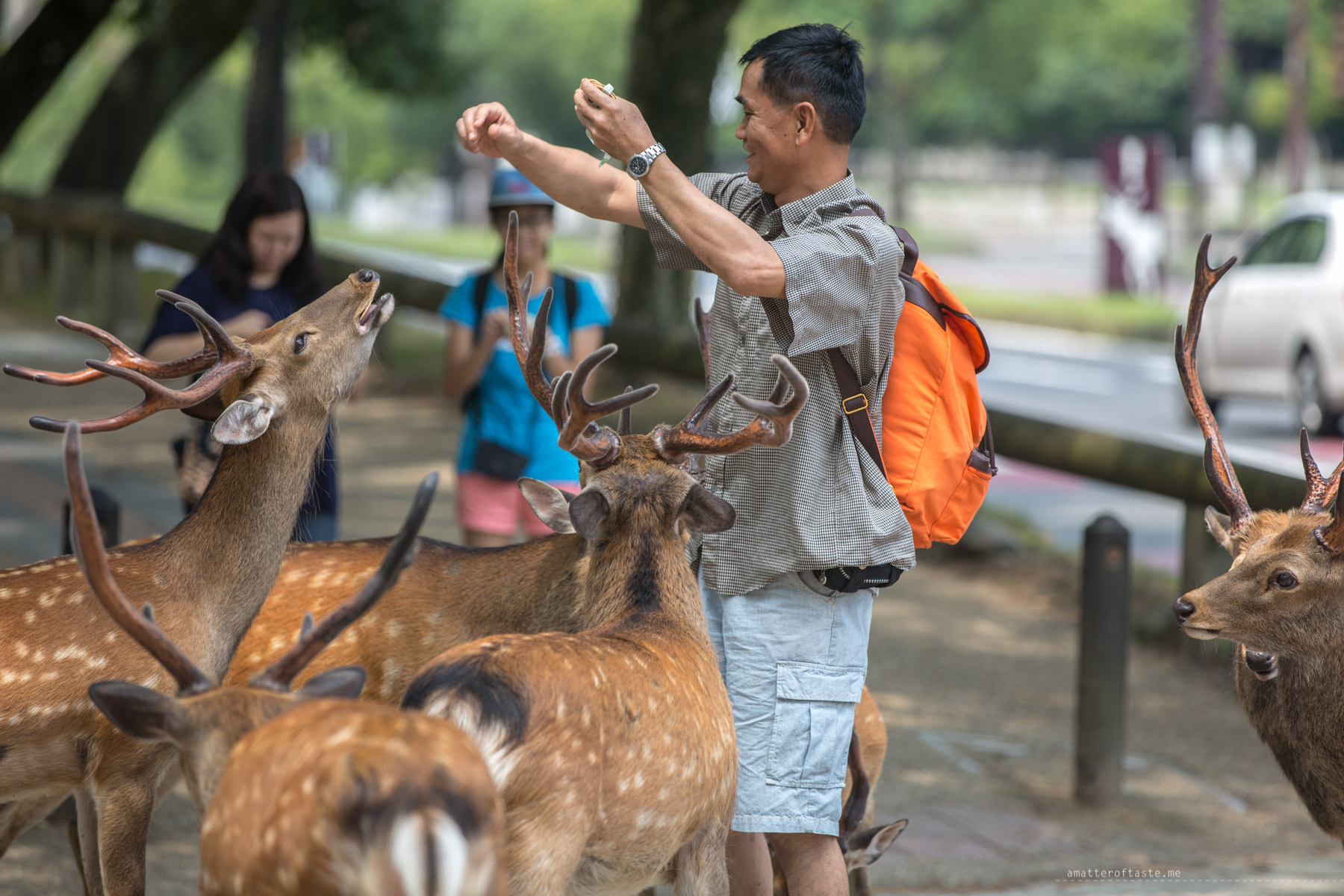 Nara was Japan’s first permanent capital. Today it’s full of historical places and building as well as it’s dotted with temples. As we have already planned to visit some temples in Kyoto, we didn’t want to overdo it with visiting too many of them, so we skipped the ones in Nara. Instead, we went to see the famous Nara deer and check if they’re really violent when you hold the crackers.