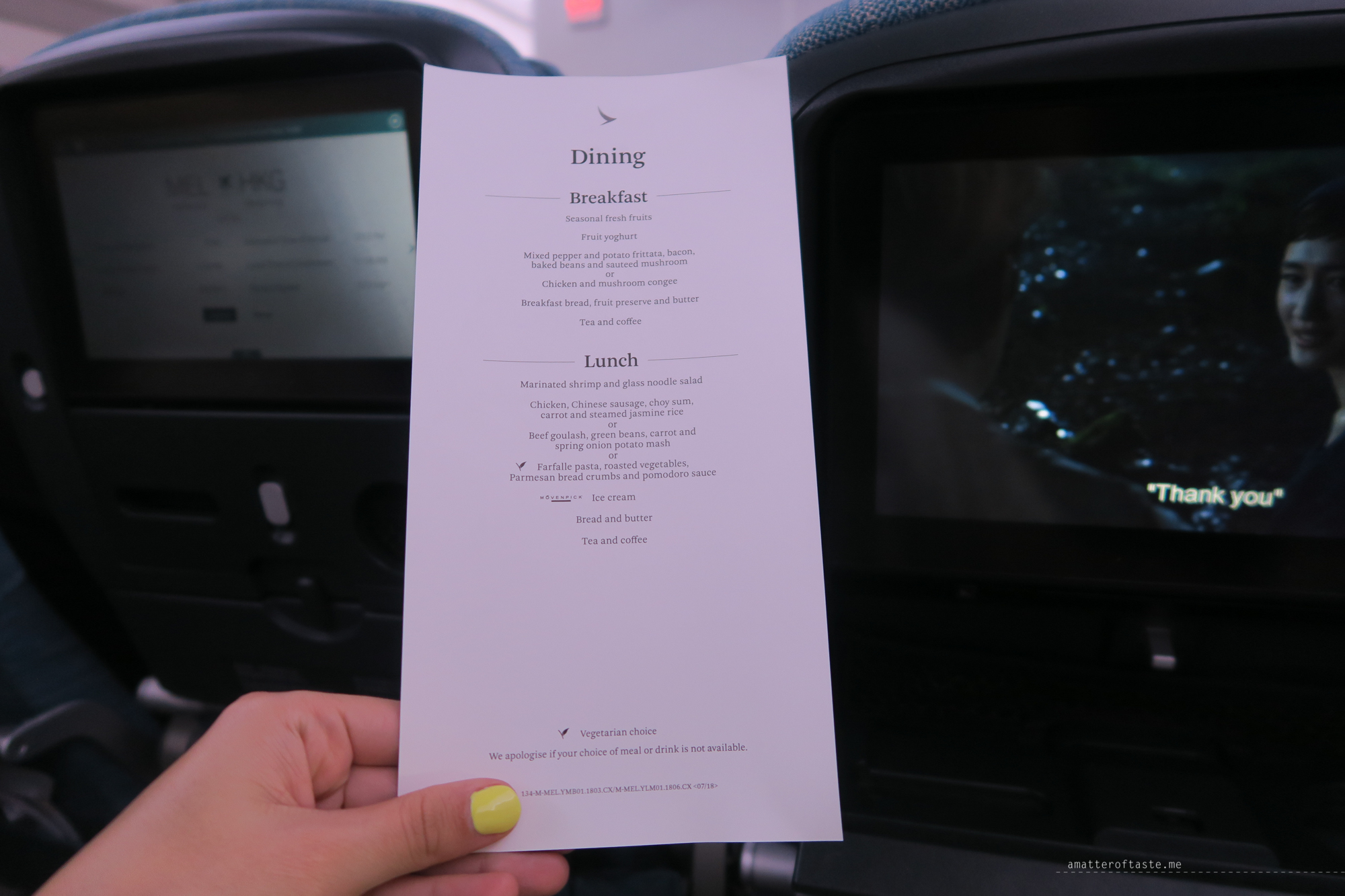 Meanwhile in seat 17A – Business Class on Melbourne to Hong Kong flight with Cathay Pacific