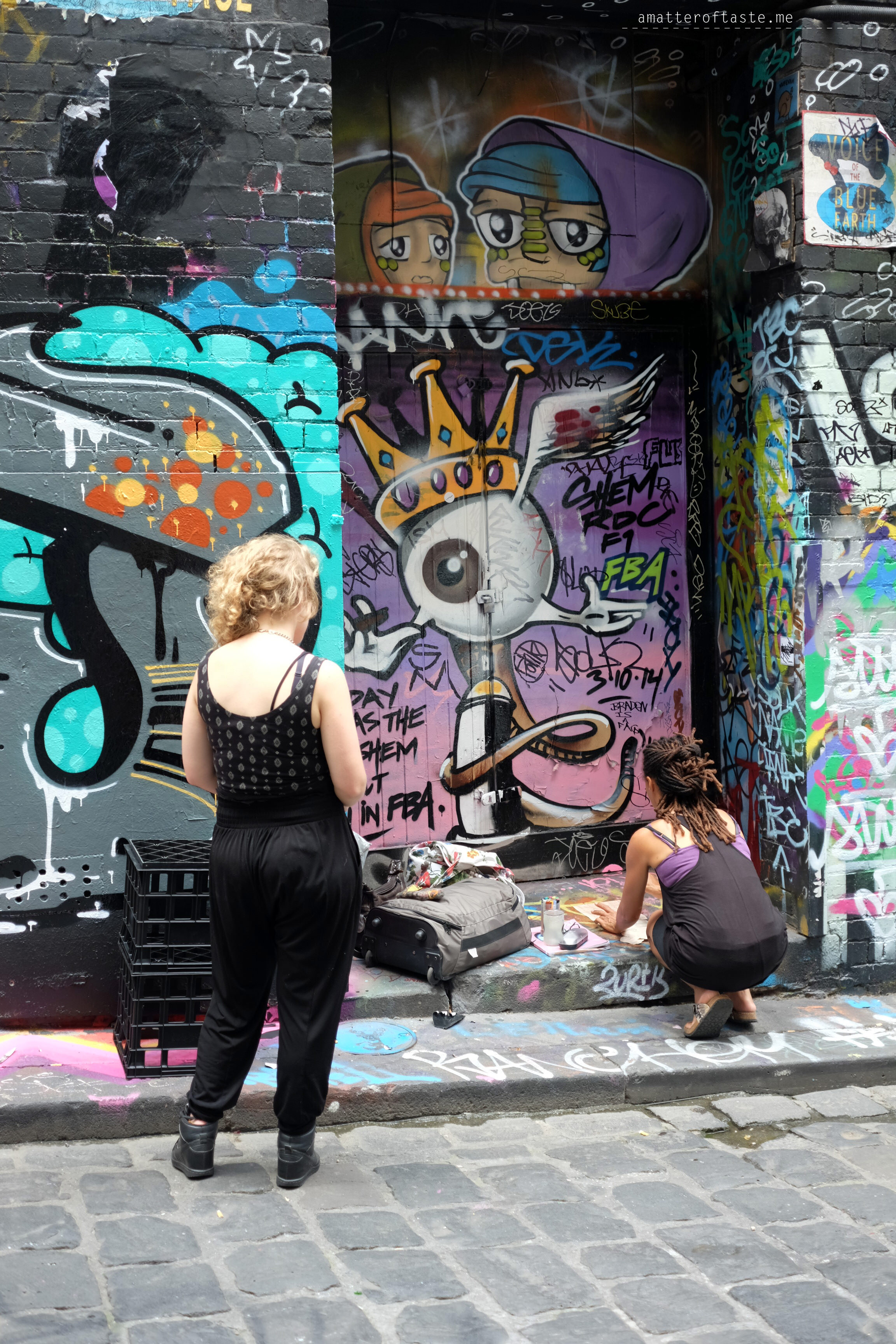 Fuelled with great coffee, with a map in hand to help us out and cameras charged to capture all the creative colourful art, my friend Julia and I went for a very-Melbourne afternoon walk. I’m still trying to grow my appreciation for street art – love the brilliant pieces, some can really make me smile and brighten my day, but some, well, let’s just say they’re too close to tagging, which is just plain vandalism.