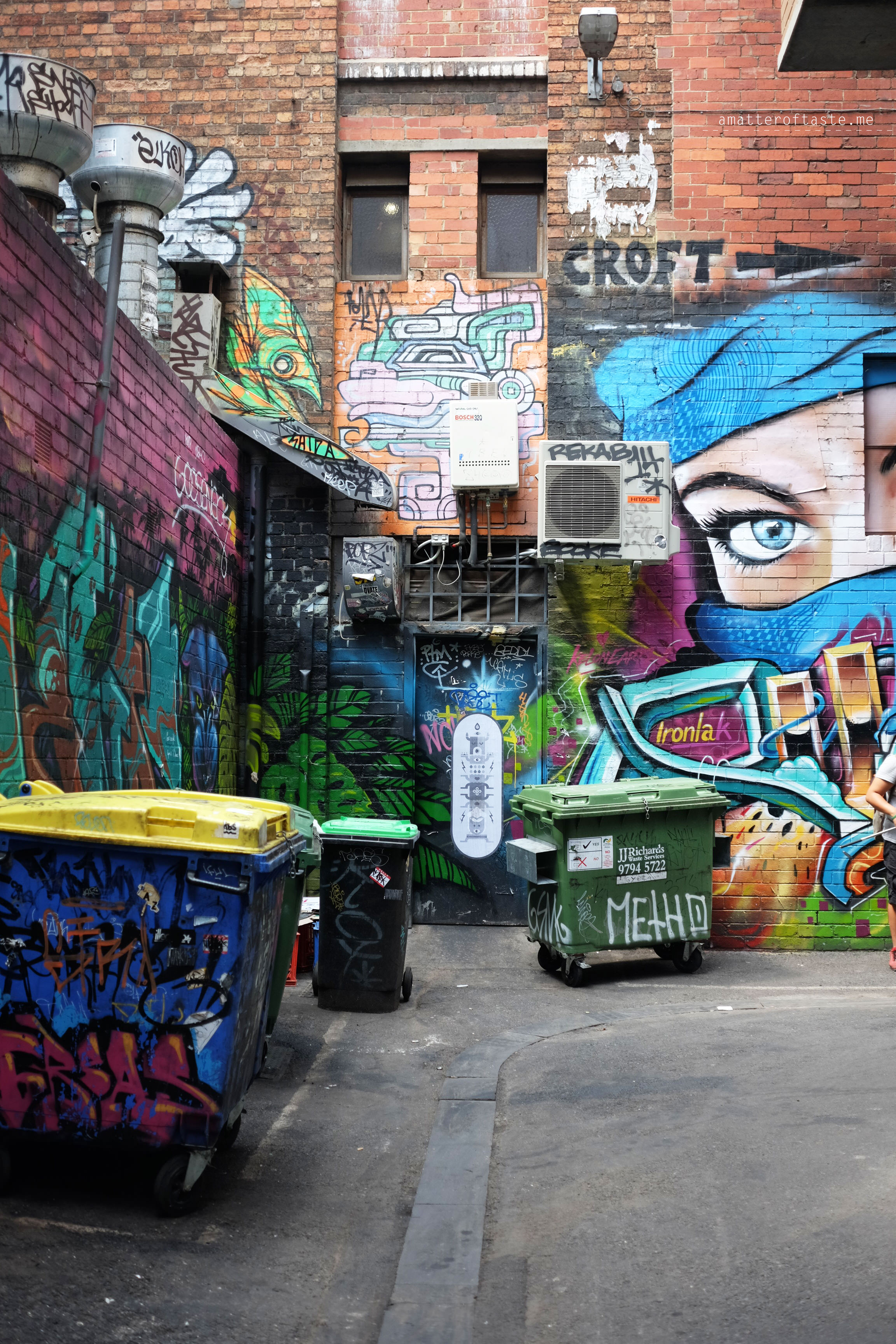 If you’re interested in what’s going on in the Melbourne street art department beyond Hosier Lane and you have a few hours to spare make sure to do this walk. I do recommend using a map, as some of the streets are quite small and if you’re not keeping your eyes peeled for them you could easily miss them.