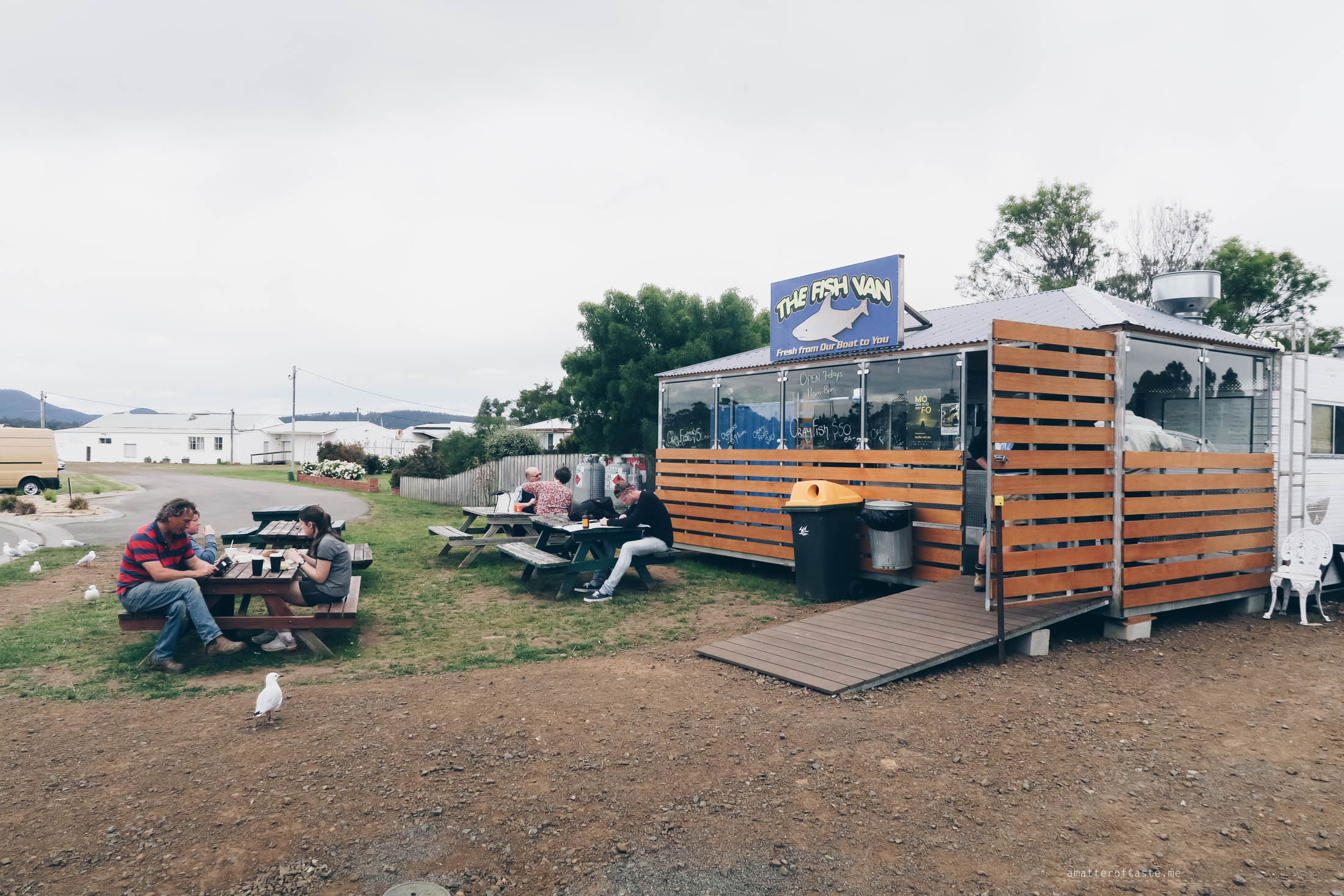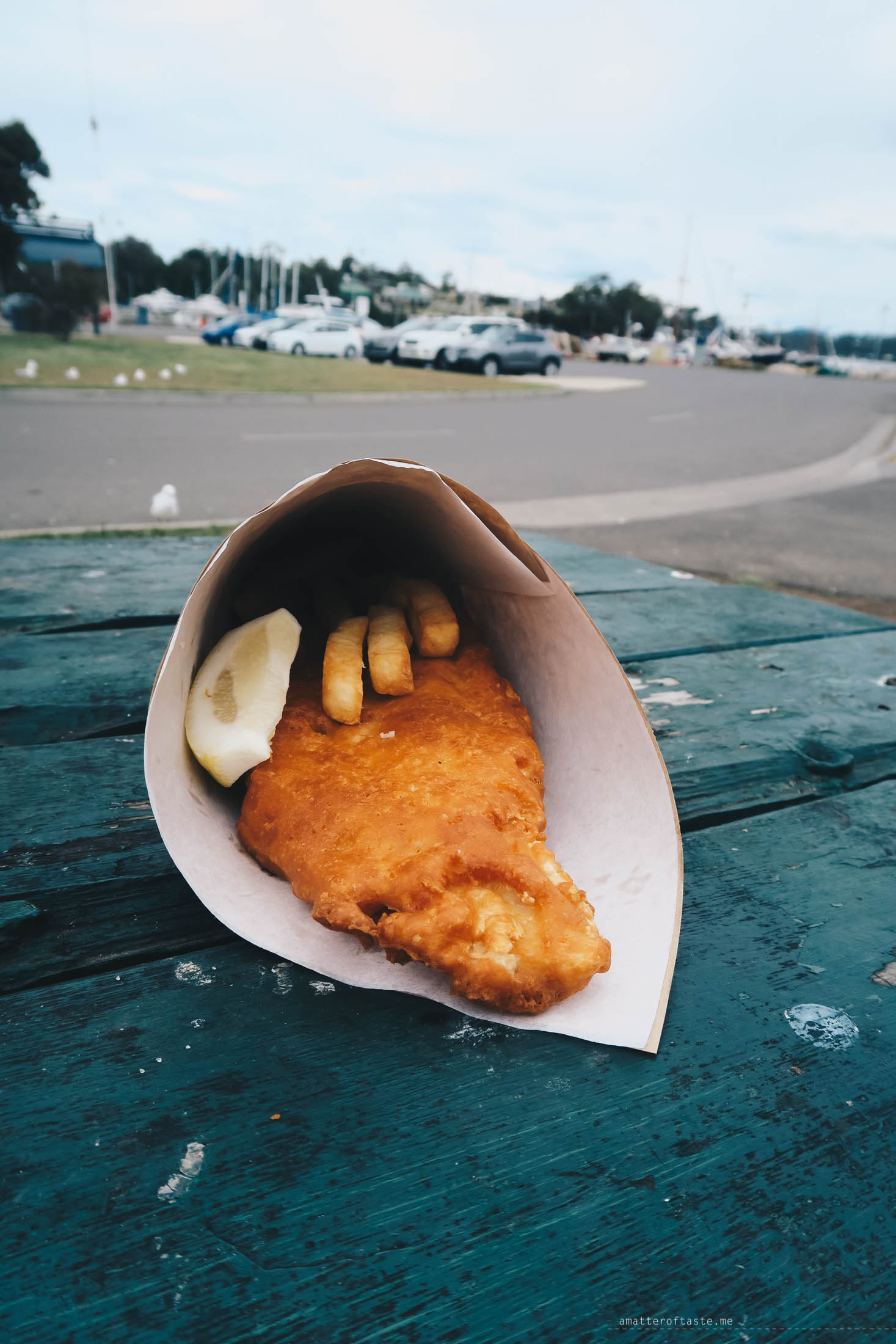 We got hAngry during the drive and coincidentally it was in Triabunna where according to my notes I prepared before the trip, was the best fish & chips in Tasmania. The Fish Van serves their meals in brown paper cones and is located next to a quiet marina. It would be a great experience if the seagulls weren’t surrounding us and plotting how to steal our food.