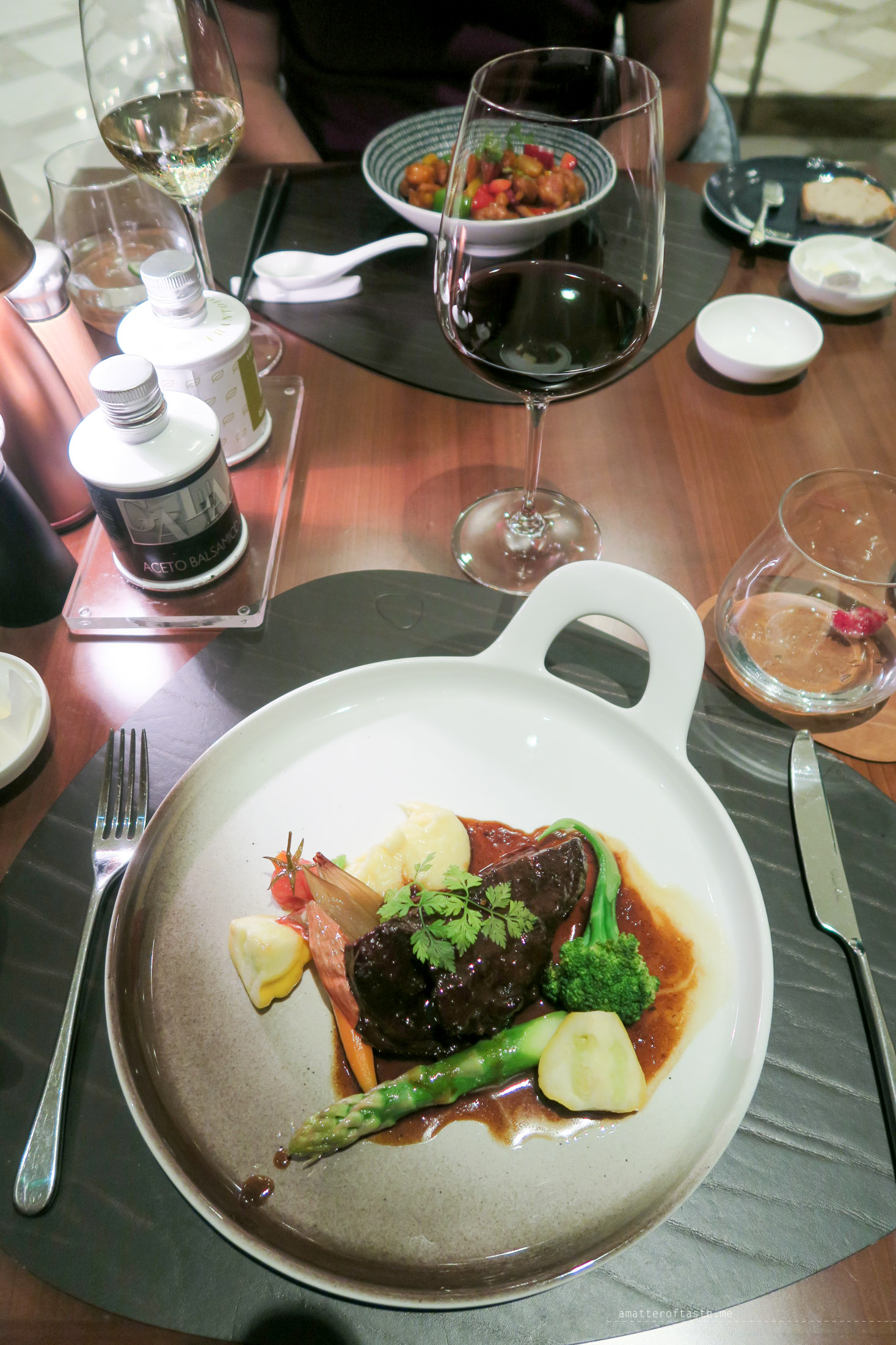 After the drinks, we headed over to the Racines – Sofitel Singapore City Centre’s signature restaurant. It’s conveniently just a few steps away from the bar. We did have a reservation but the restaurant was almost empty when we arrived at 7.30pm – I thought maybe it’s because it’s new and not many people know about it yet. But I was wrong. It looks like Singaporeans start their dinners late and by 8.30pm it was full of people.