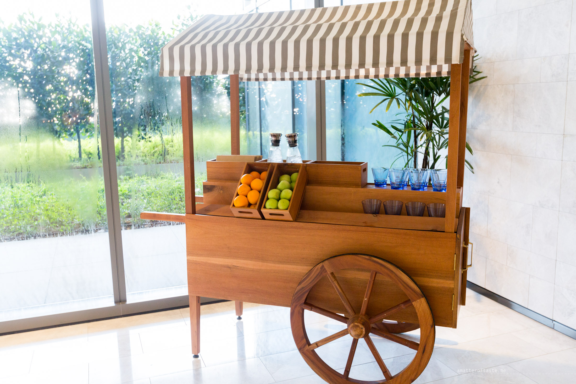 While we never made it to the Club Millésime (available to guests of Luxury Club Rooms and Suites) for breakfast, we visited the club many times each day – for refreshments during the day, afternoon tea, complimentary evening drinks and canapes and absolutely enjoyed the calming atmosphere of the place. Quiet, sophisticated, private. The staff working there were friendly and great at remembering guests – over the 3 days we spent at the hotel, they only once asked us for the room number. The evening drinks and canapes (from 5pm each day) shouldn’t be missed. There’s a chef cooking something special and different each day, cheeses are aplenty and the alcohol is free-flowing (including a handy Enomatic wine dispenser).