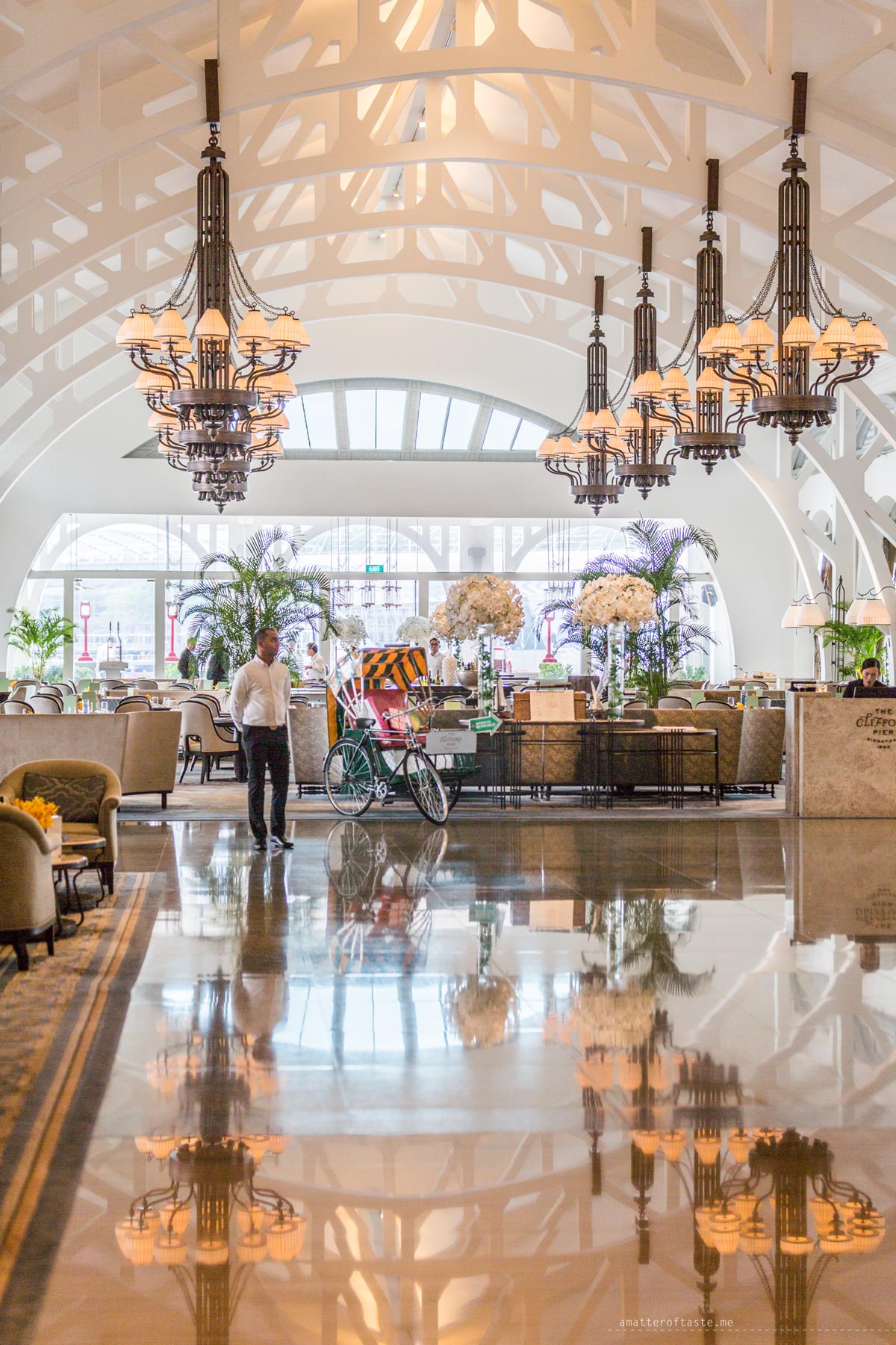 She walks fast, my legs don’t stretch like this after the 7h flight from Australia. Slow down! – I want to say but I’m too distracted by the opulent inner courtyard, of which I only get a tiny glimpse before we’re in the lift. Every member of the staff we see on the way greets me, some even by my name. Within what feels like seconds I’m in my 4th-floor room. – Please just sign here and have a lovely stay. – the registration formalities are swiftly completed in my room. – Complimentary evening drinks & canapés in the Straits Club start in 30 minutes. – now I know why we were walking so fast.
