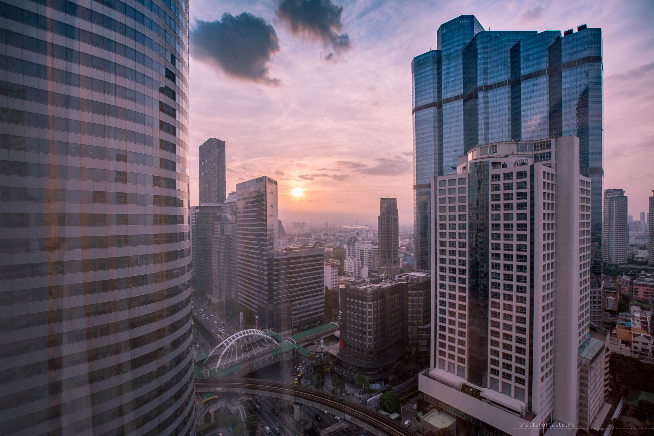 I woke up to a sunrise over the city. My first ever look at Bangkok by day, through the panoramic window, was a one to remember. I found my welcome treats on the desk. It was very early, breakfast was 1 hour away, so I spent my morning eating chocolate-covered marshmallows and taking in the view.