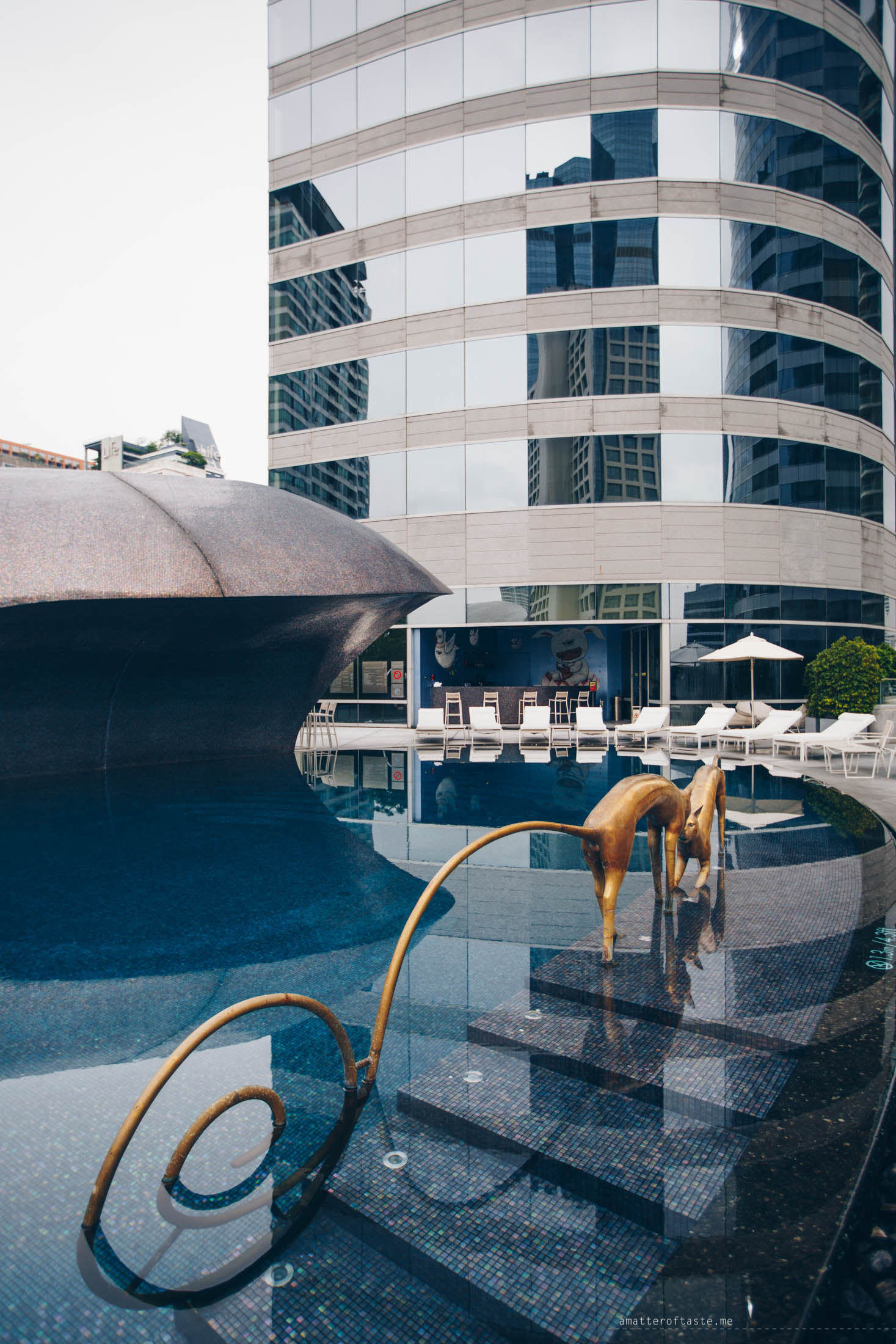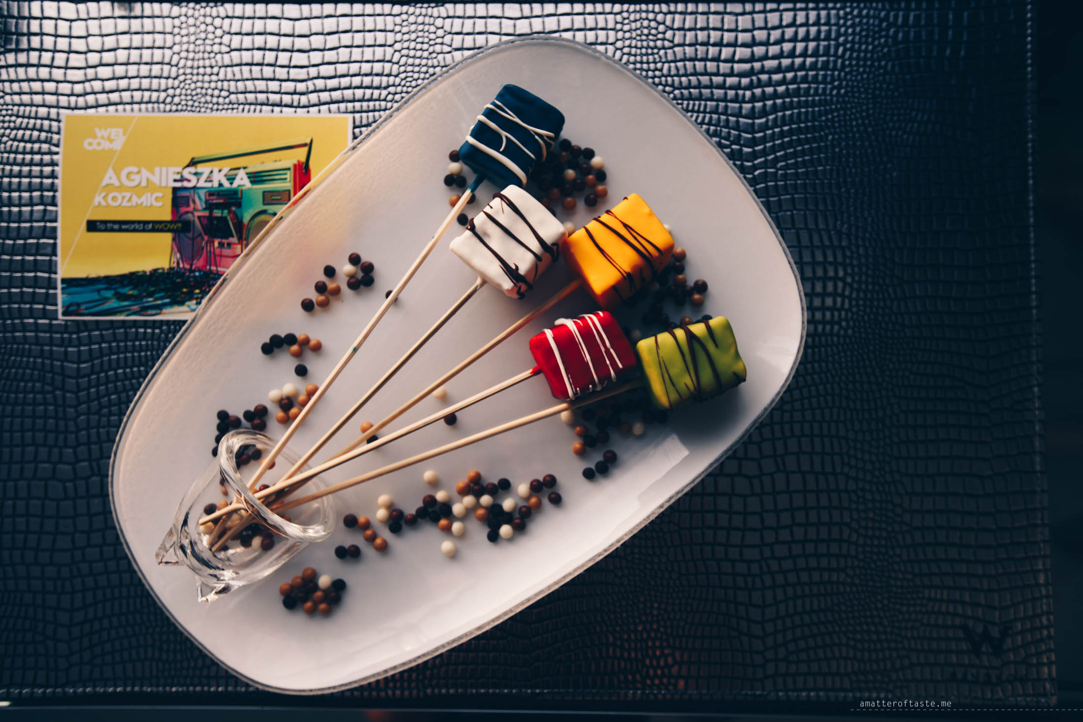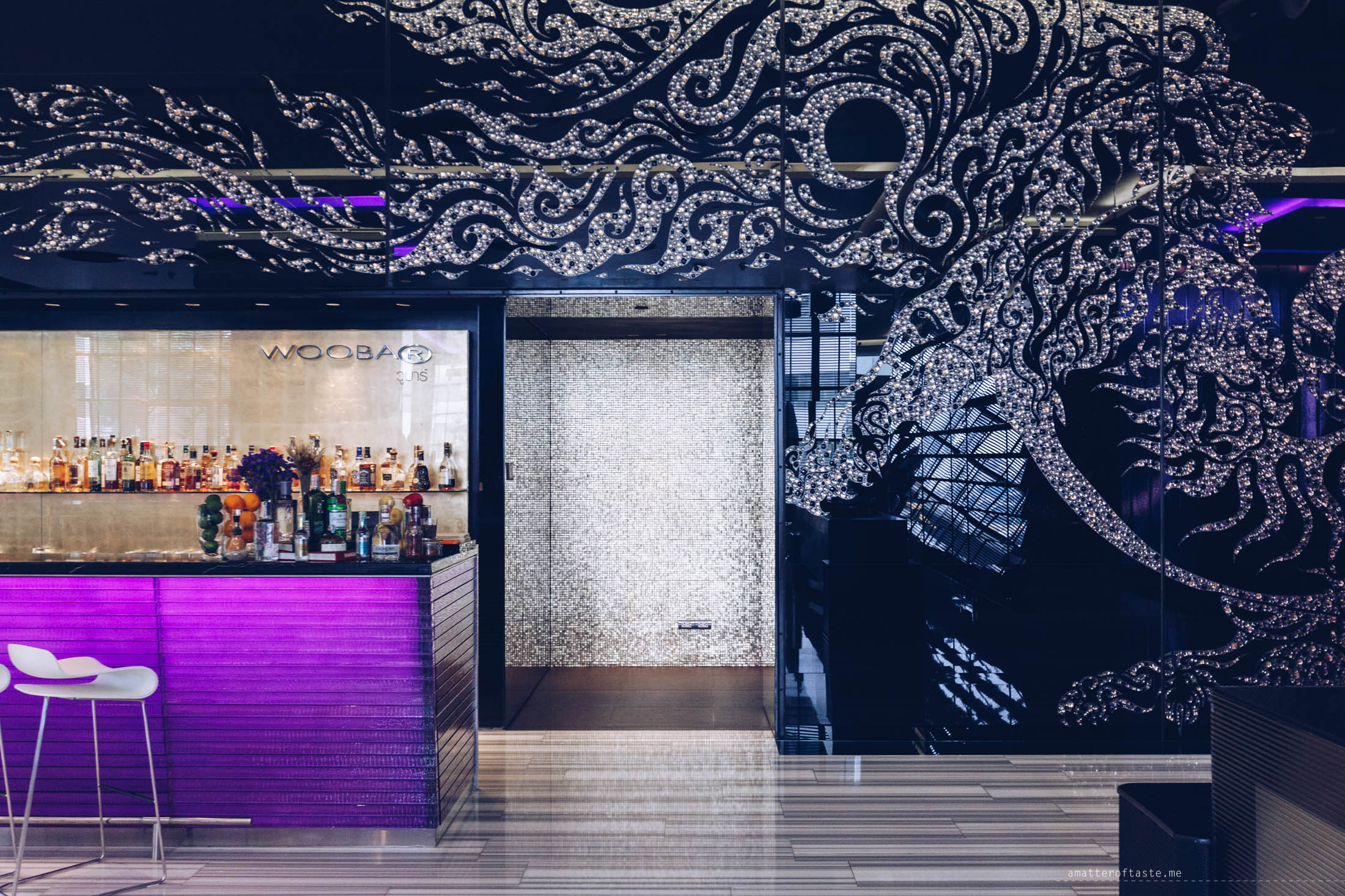 Woo Bar, right next to the lobby, was much more quiet when I was staying at the hotel, as it was during the mourning period. Normally, featuring famous DJs it’s a place to be and party. I spent a few hours there, taking advantage of the 2-for-1 cocktails promo card I found in my room. The cocktails menu is long and it wasn’t easy to decide. After a lot of thinking, I settled on 2 fun cocktails – one with marshmallows, the other with gummy bears. Complimentary bowls of chips & nuts were also provided.