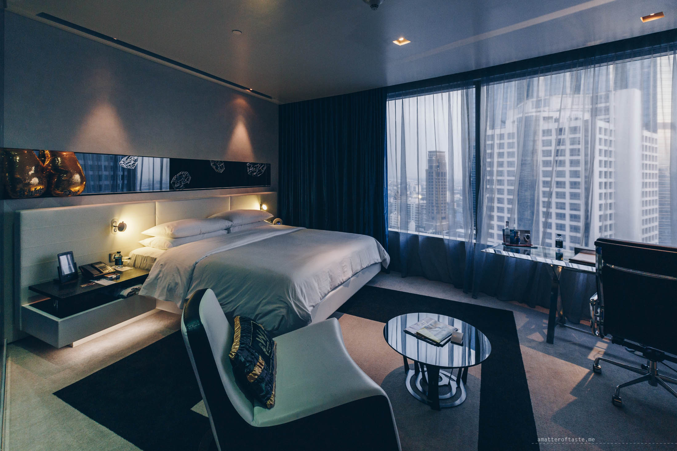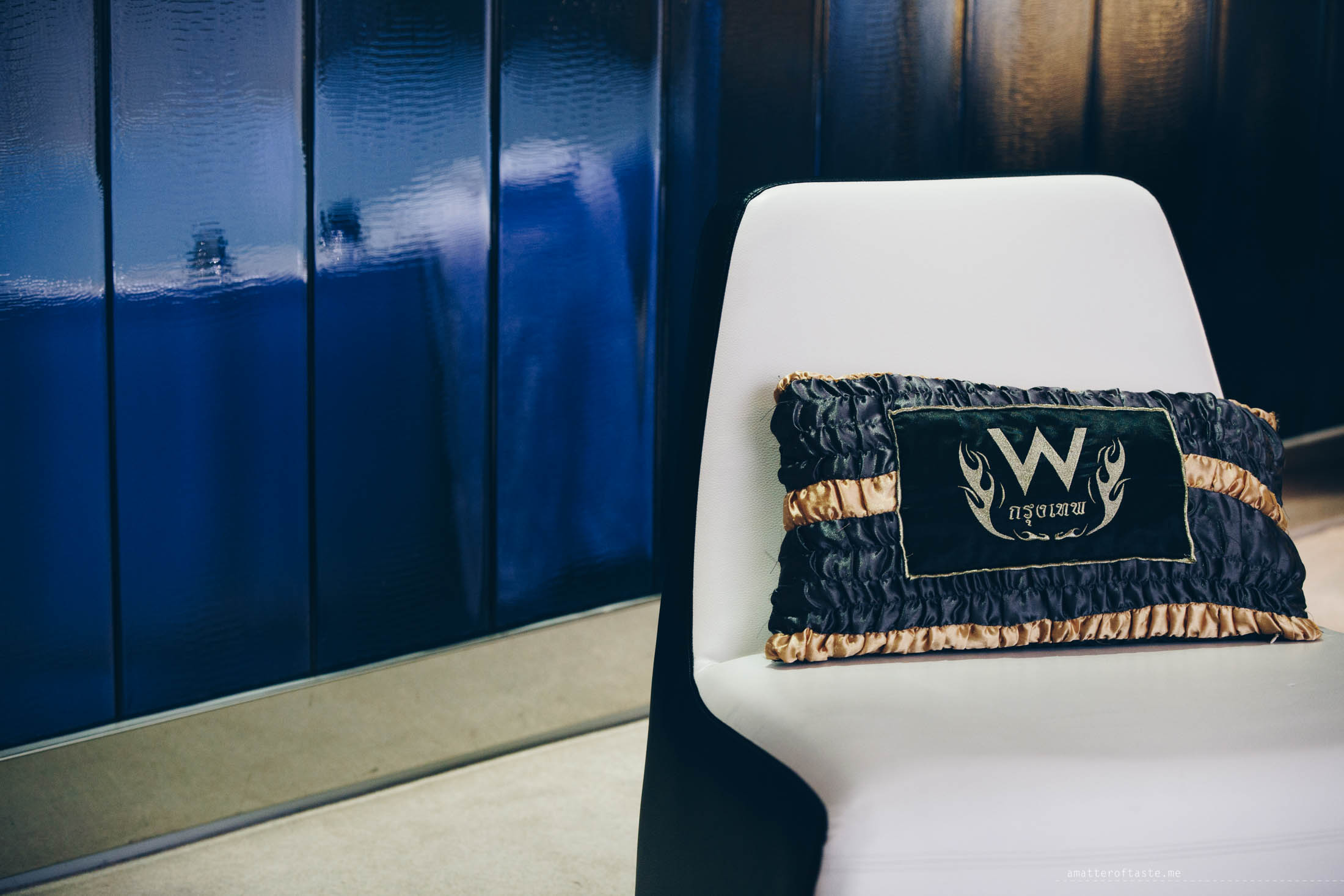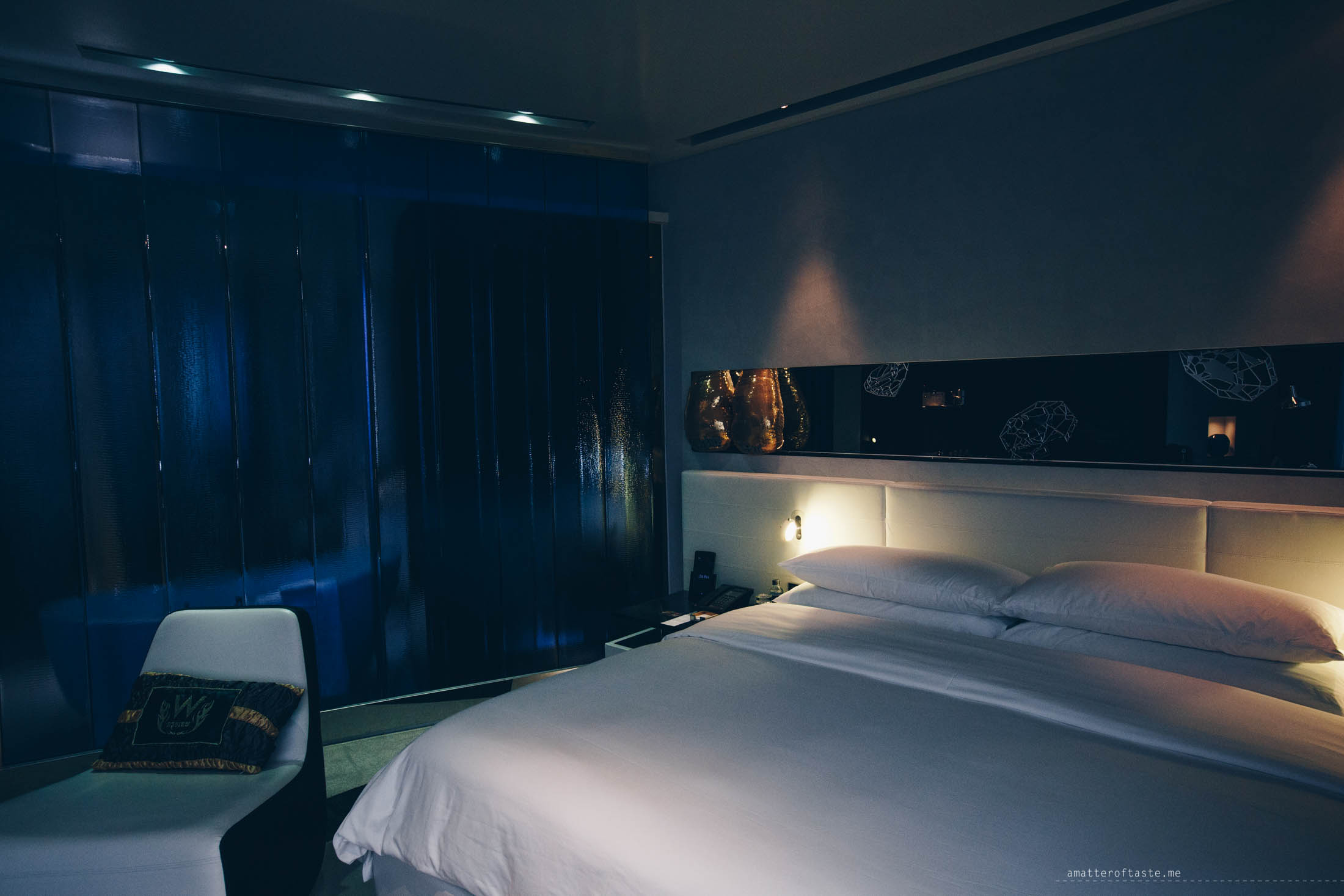 Tired and maybe still a bit tipsy from all that beer I was given by the nicest cabin crew on my flight to Bangkok, I arrived at the W Hotel in the midst of a late-night tropical storm. Greeted with smiles at the door, I was taken care of at the check-in desk and in no time I was in my room on the 23rd floor. The curtains were drawn, mood lighting was on and the bed looked very inviting.