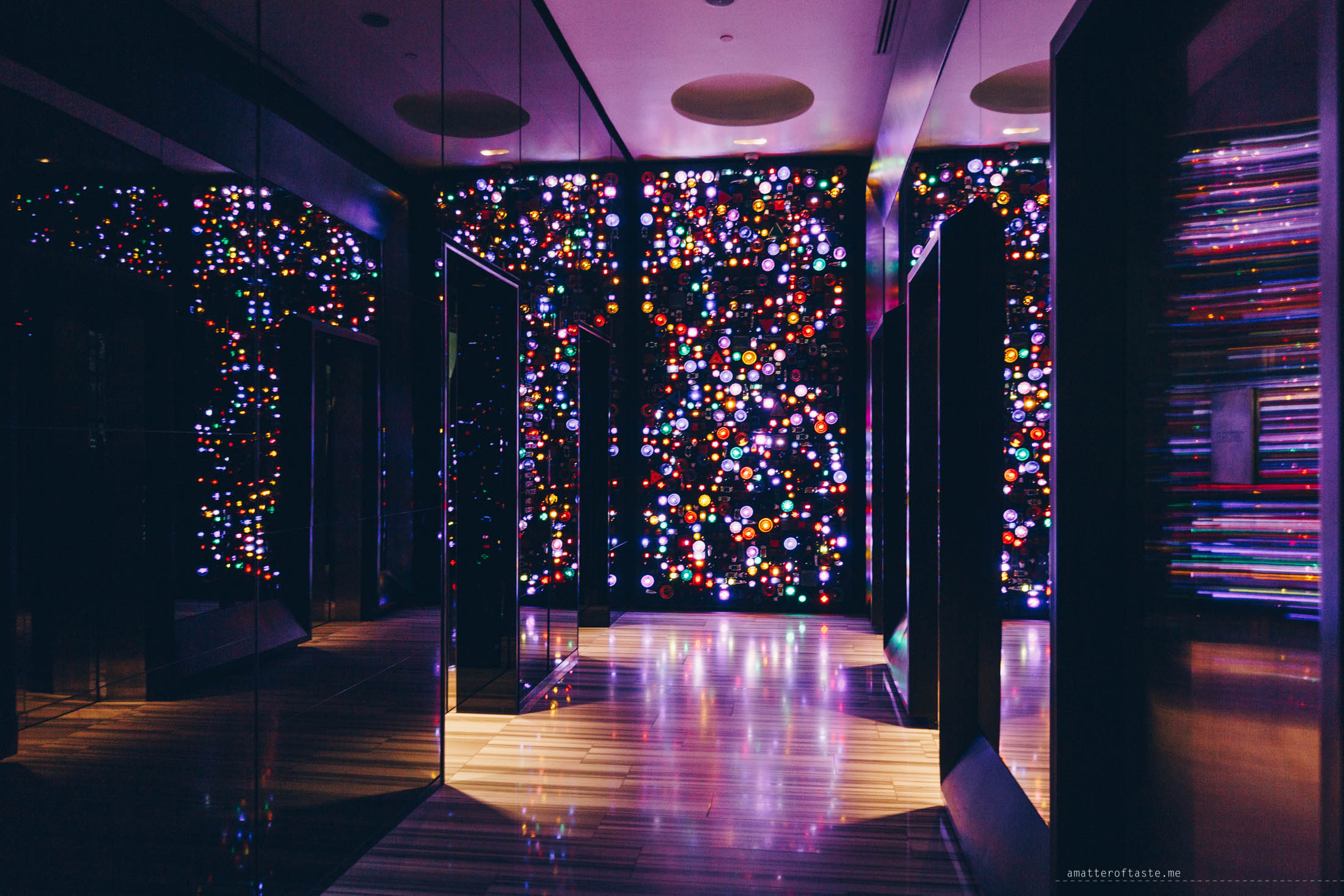 I also liked the art by the ground floor lifts – Bangkok Nights. Inspired by Thailand’s legendary traffic congestion and street lights, it’s made of 800 different kinds of lights, typically found on tuk-tuks. Just like Bangkok itself, the lights change from day to night.