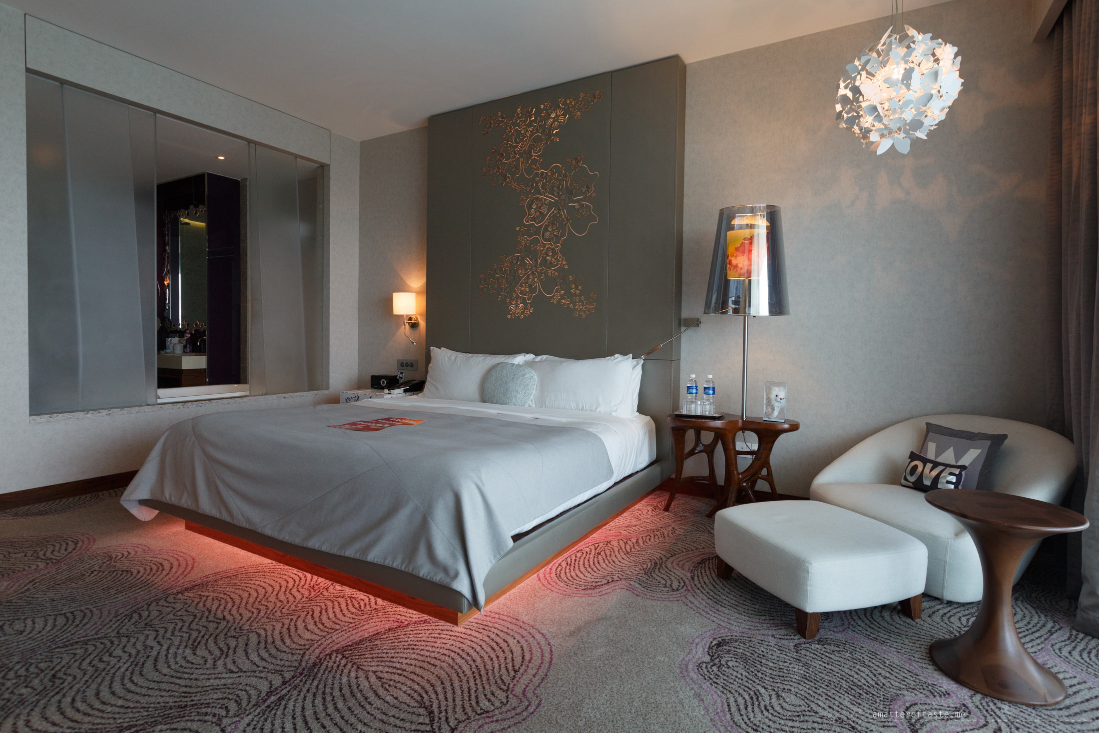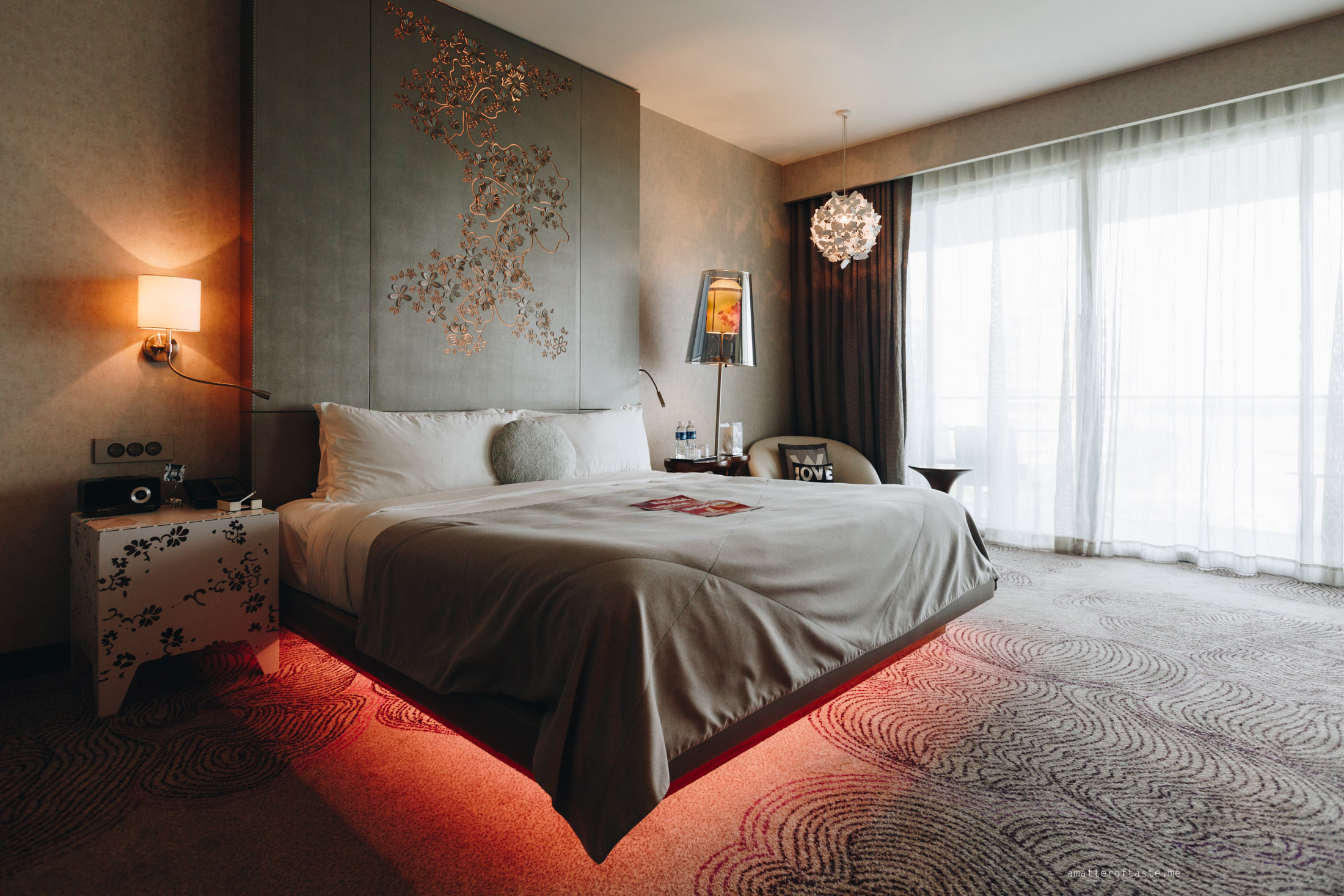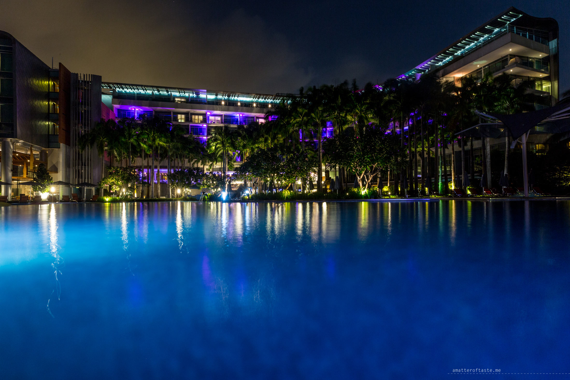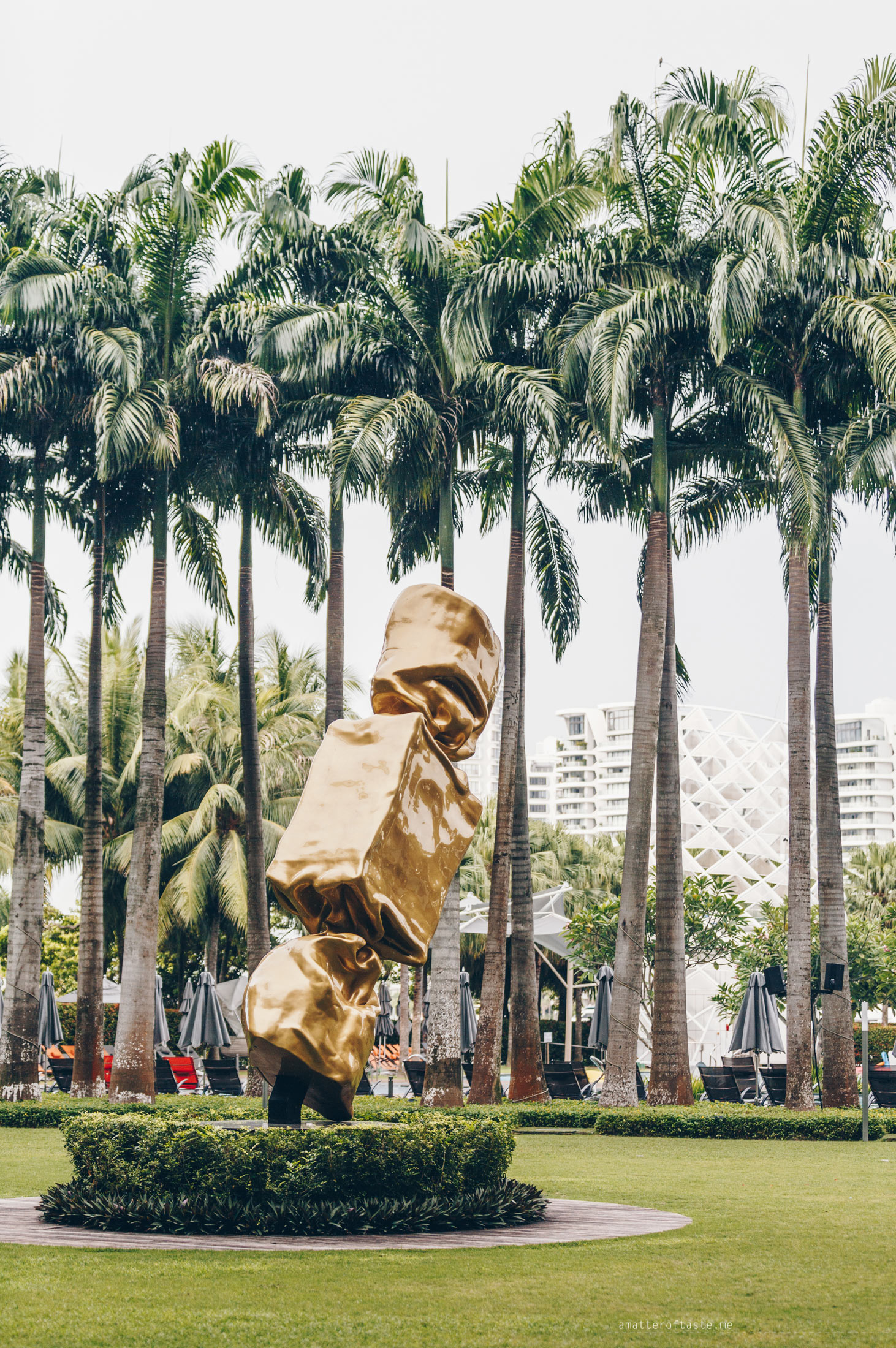 The W Singapore is set in a quiet corner of the Sentosa Island with marina and residential buildings around it. Surrounded by lush greenery and palm trees the hotel feels really secluded and it’s easy to forget about all the hustle and bustle of the big city. At the same time, it’s only about 20 minutes & SGD18 by taxi to the CBD.