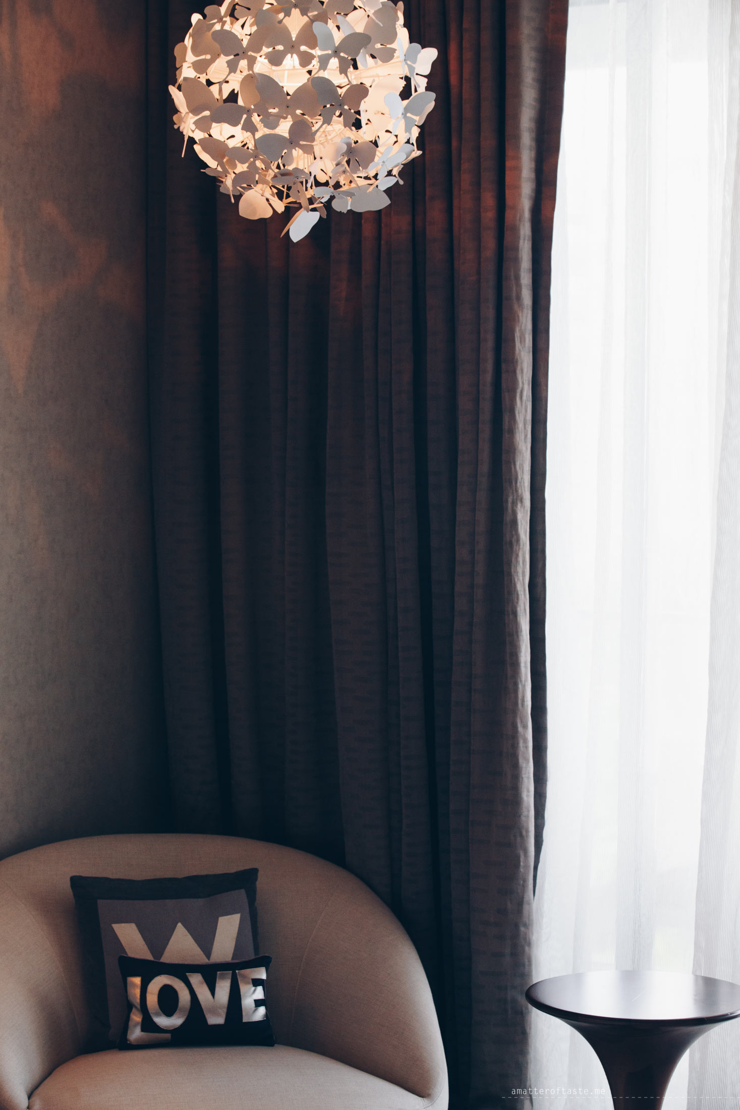 There are also many beautiful art pieces throughout the hotel. Sadly, there were no art tours offered, so I didn’t get much in terms of their background story. Custom designed carpets and velvety sexy lifts also seem to be very artsy. W once again proves to be my kind of hotel.